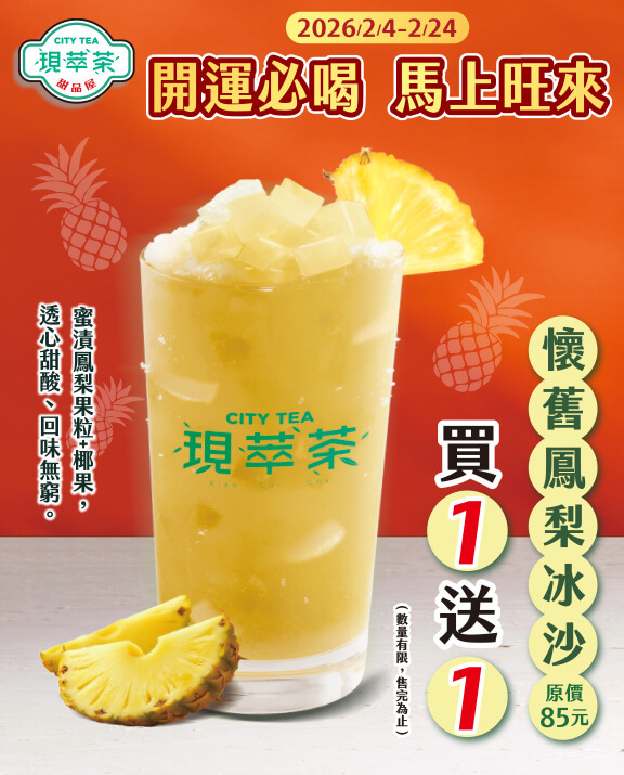 | 懷舊鳳梨冰沙 | 買1送1 | 2/4~2/24 |
