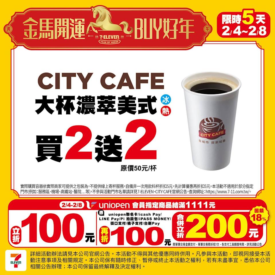 | 大杯濃萃美式咖啡 | 買2送2 | 2/4~2/8 |