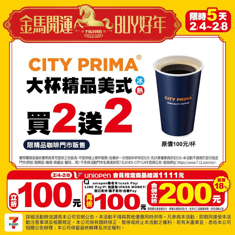 | 大杯精品美式咖啡 | 買2送2 | 2/4~2/8 |