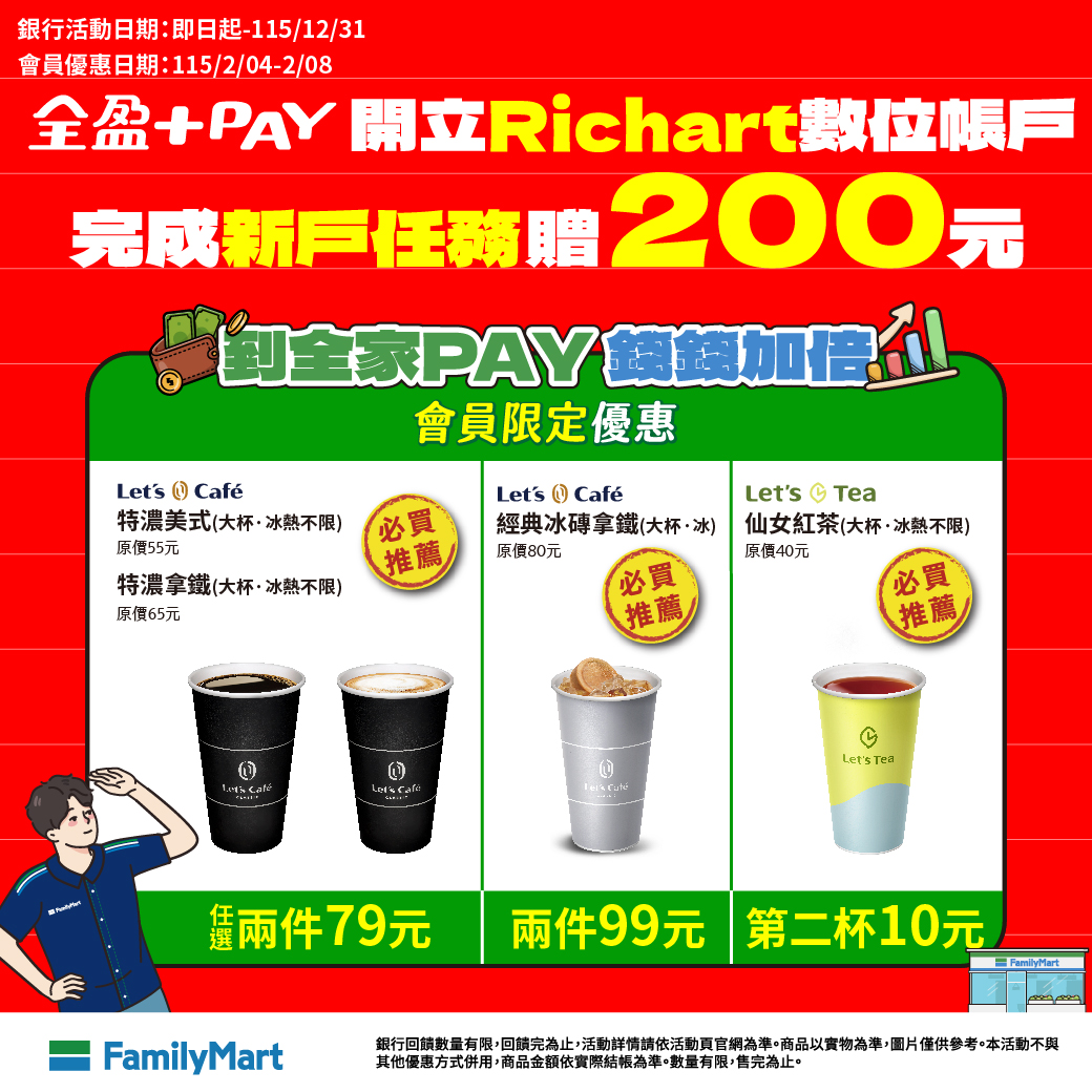 2026全家咖啡、茶飲限時優惠