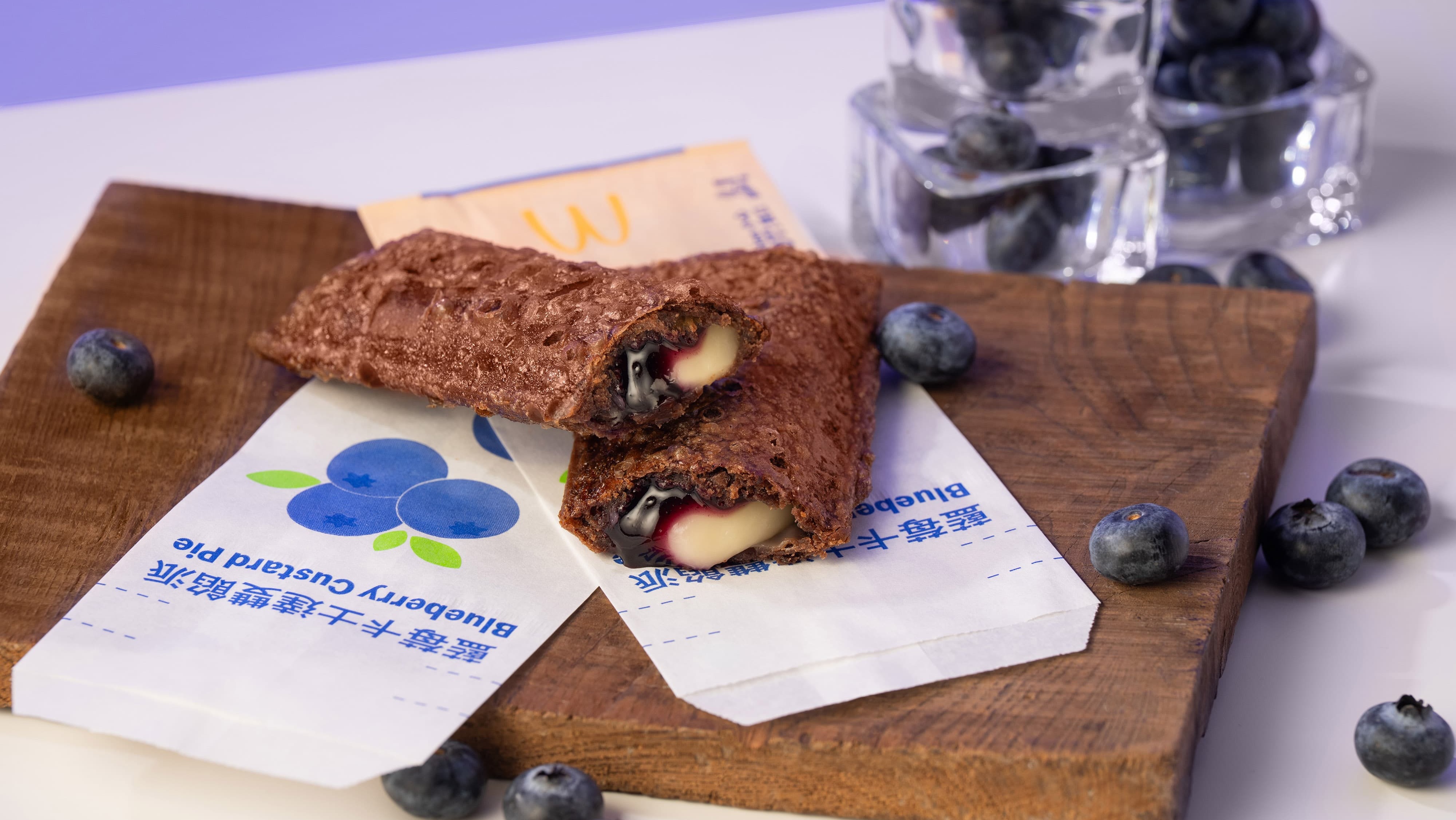 甜點「藍莓卡士達雙餡派」有著酥脆可可派皮,內含香醇濃郁的卡士達醬和藍莓醬,口感酸酸甜甜,自 10/15 限期販售,到 11/11 或售完為止。