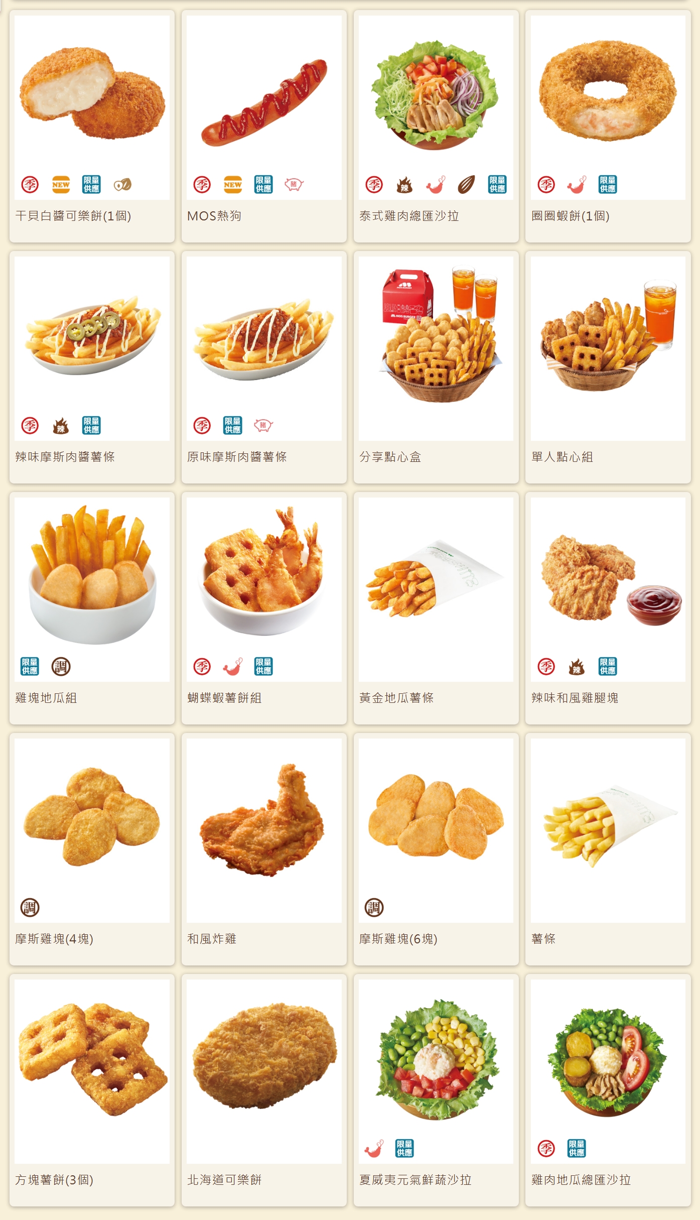 摩斯漢堡菜單
