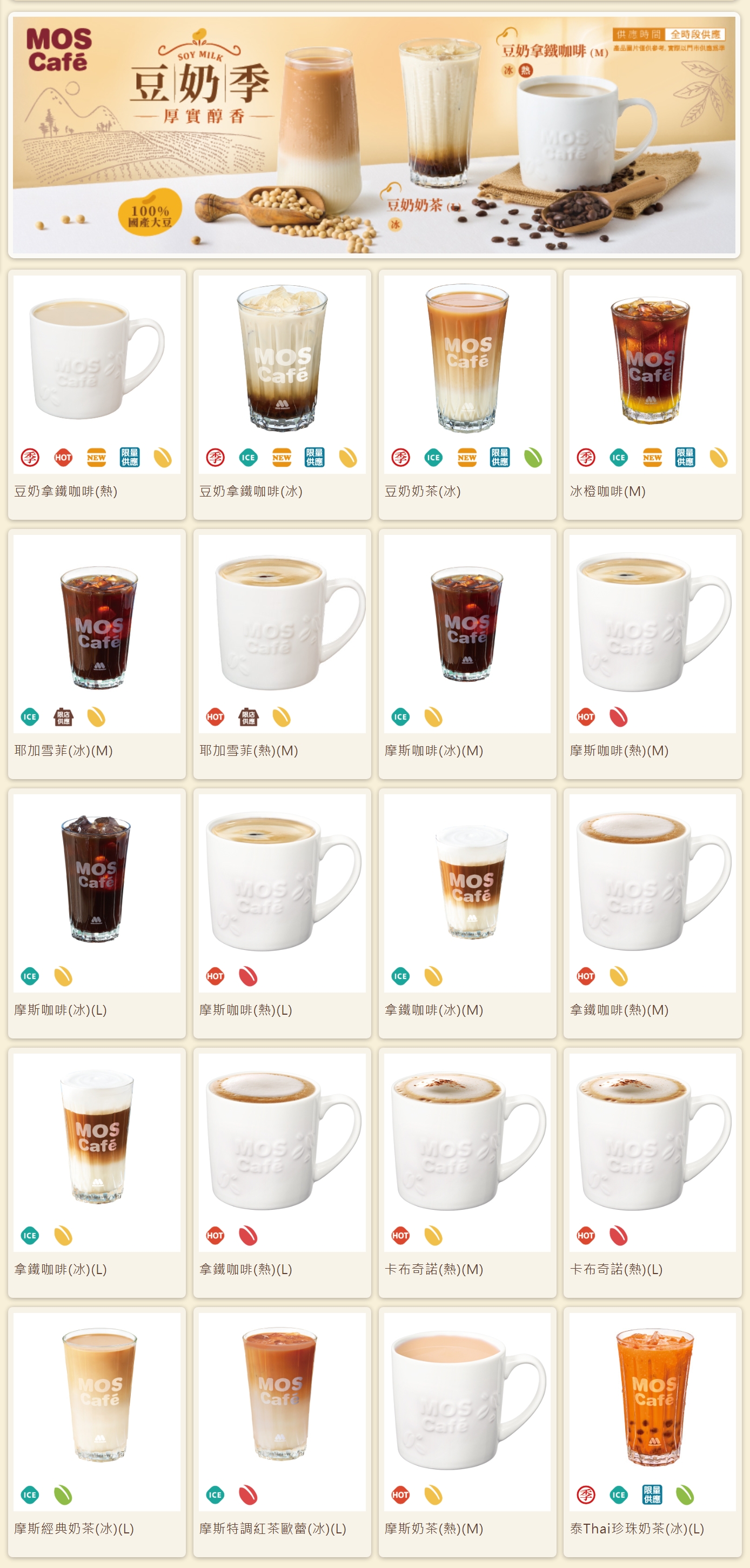 MOS Cafe價目表:摩斯咖啡、拿鐵、卡布奇諾、歐蕾