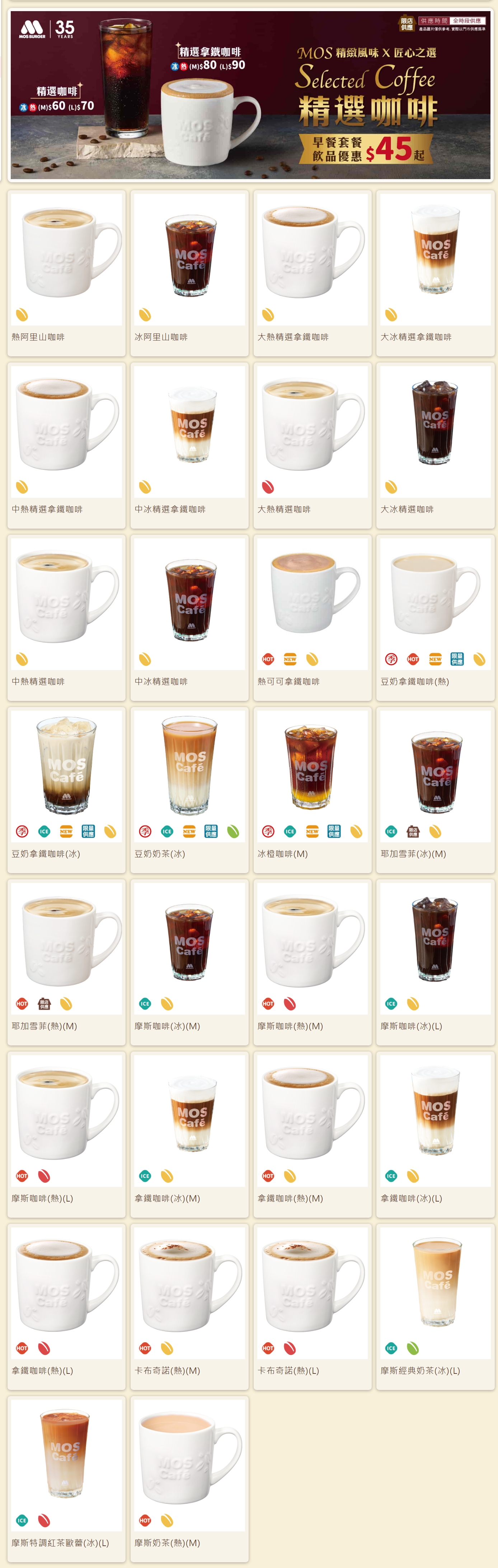 | T65 | 摩斯咖啡(L)/摩斯經典奶茶 加10元多1杯 | 70元 (任兩杯) |