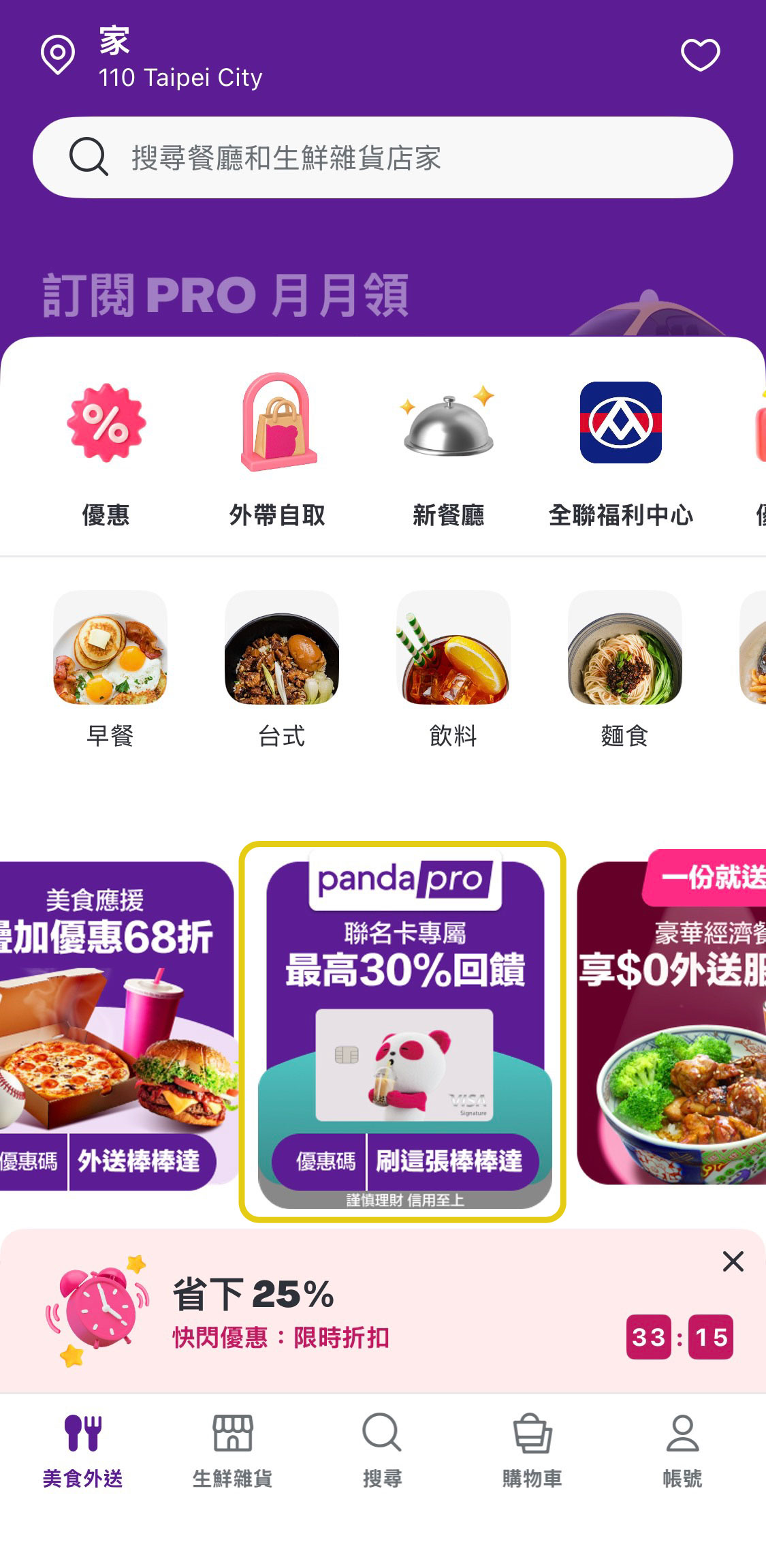 2026/04/01~2026/06/30「每月 25 號上午 10 點」超 PRO 卡友日,使用 foodpanda 聯名卡付款,享雙重優惠: