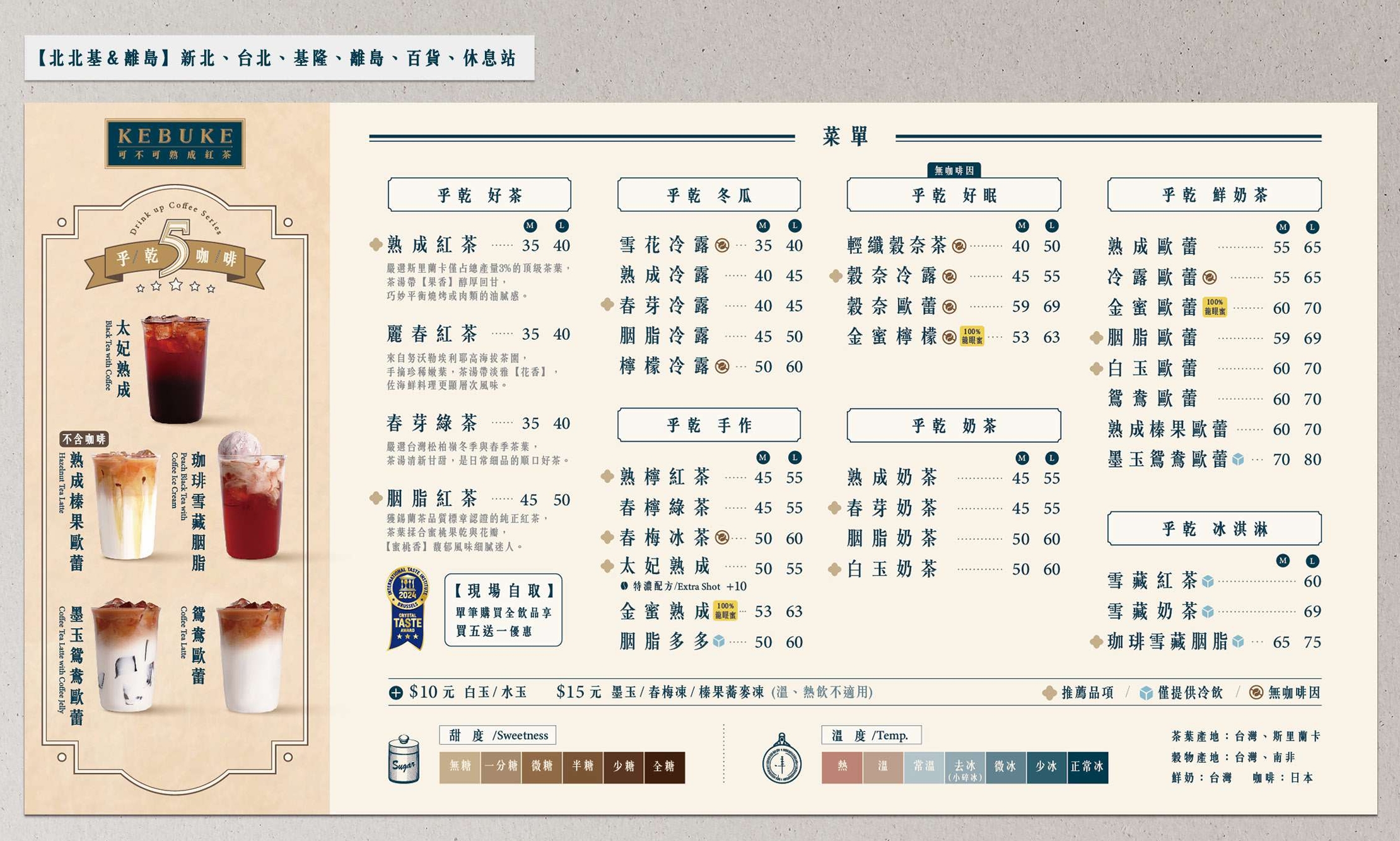 可不可熟成紅茶台北、新北、基隆、離島、百貨、休息站分店適用以下菜單。