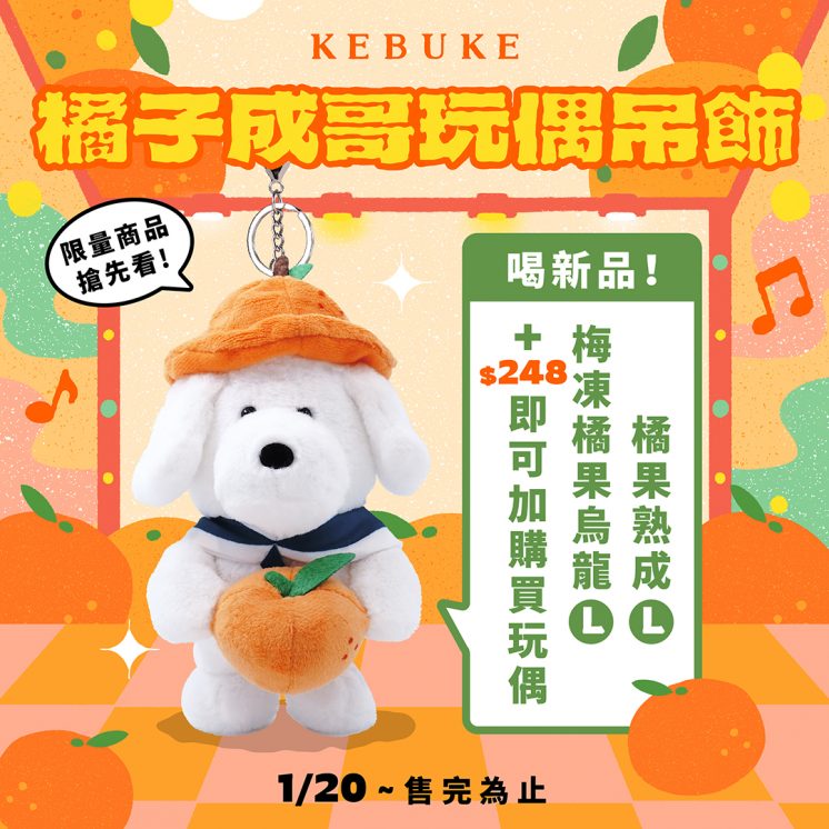 可不可熟成紅茶人氣飲料「橘果熟成」於 1/20 回歸開賣,現在購買新品,即可加 248 元購得小狗玩偶一隻,售完為止。1/20~2/22 購買任一飲品,可加 18 元獲得紅包袋乙份,或滿 200 元免費獲得。