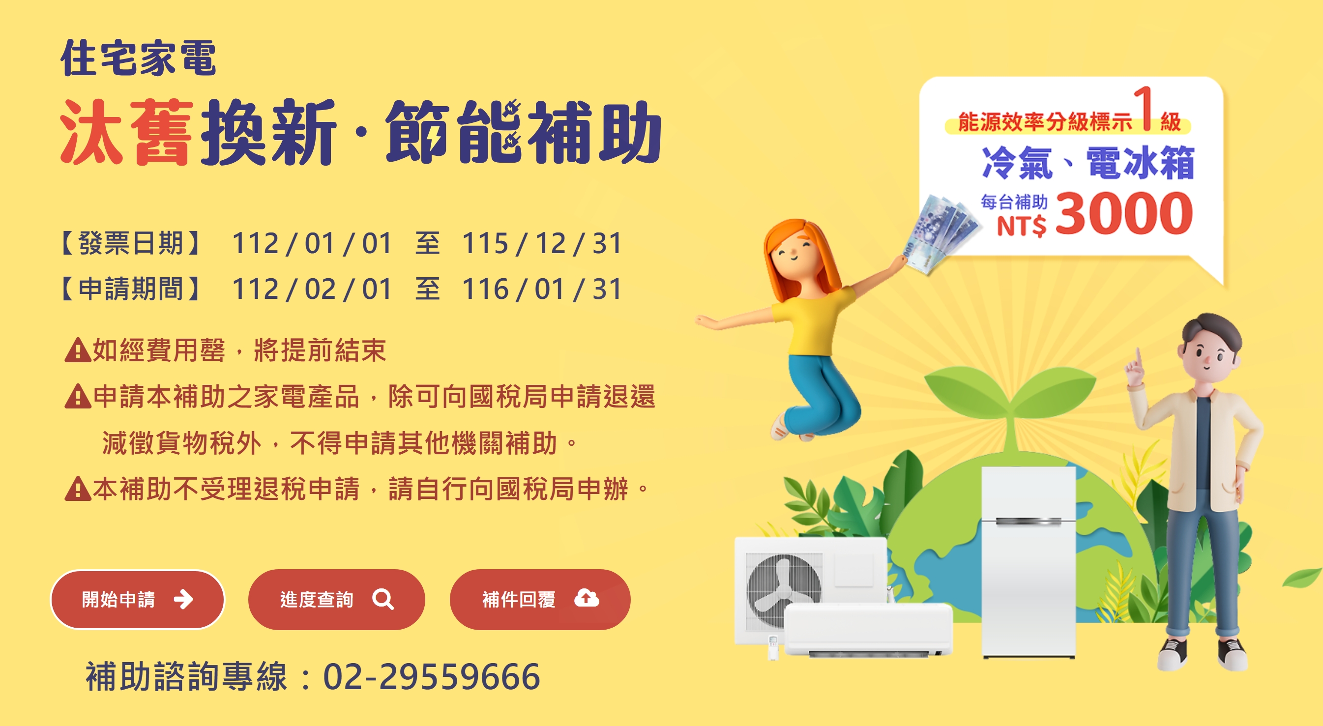 補助條件|退稅稅額|線上申請教學|進度查詢 - 2026住宅家電汰舊換新節能補助:3000元