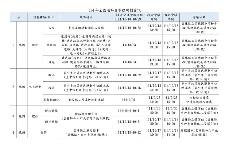 2025雲林全運會賽程:時間、參賽名單、抽籤結果(114)