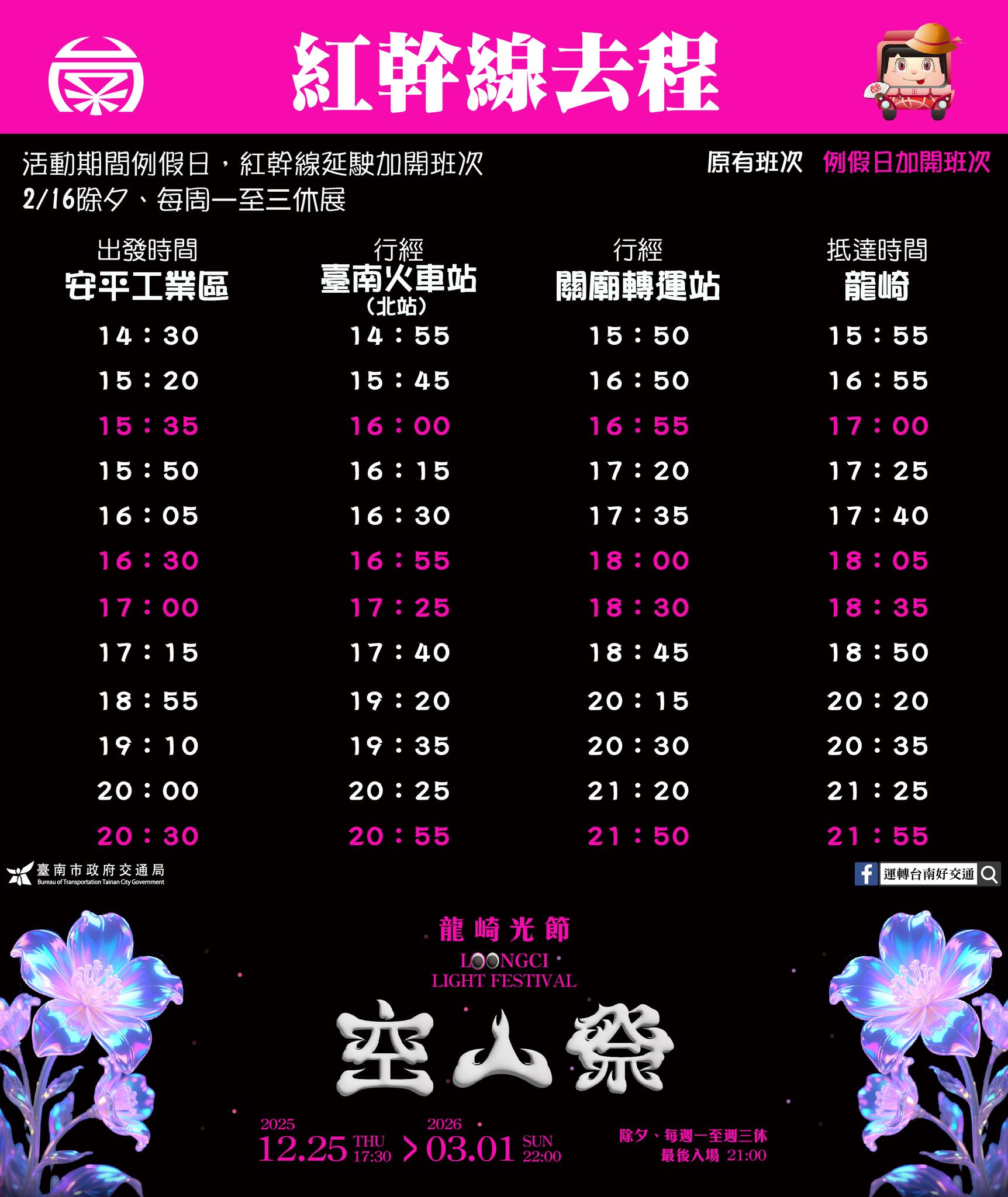 • 接駁時間:12/27、1/10、1/24、2/14、2/28。