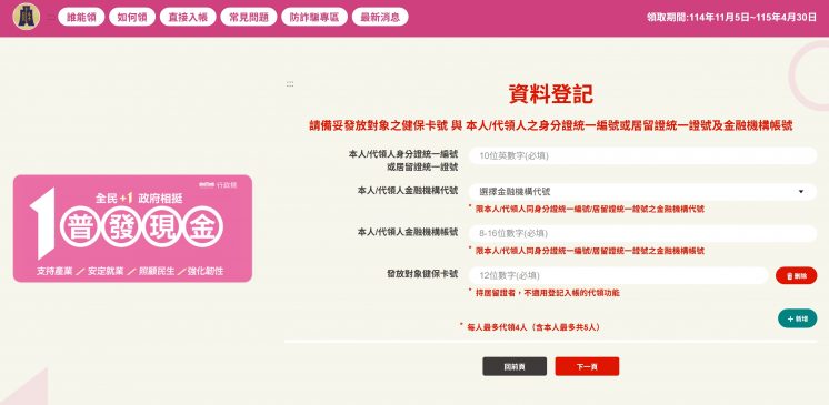 👉點此前往登記網站 (10000.gov.tw為1萬元登記入帳系統,已開放)