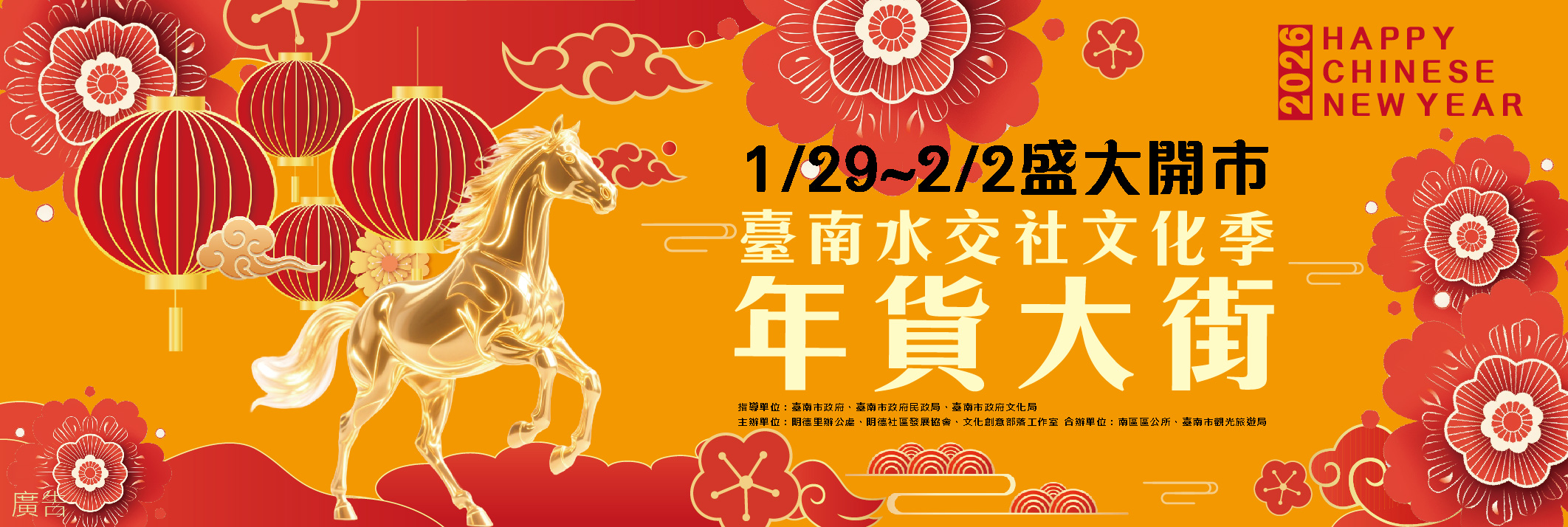 | 2026新化年貨大街 | 2/10(二)~2/15(日) 12:00-21:00 |