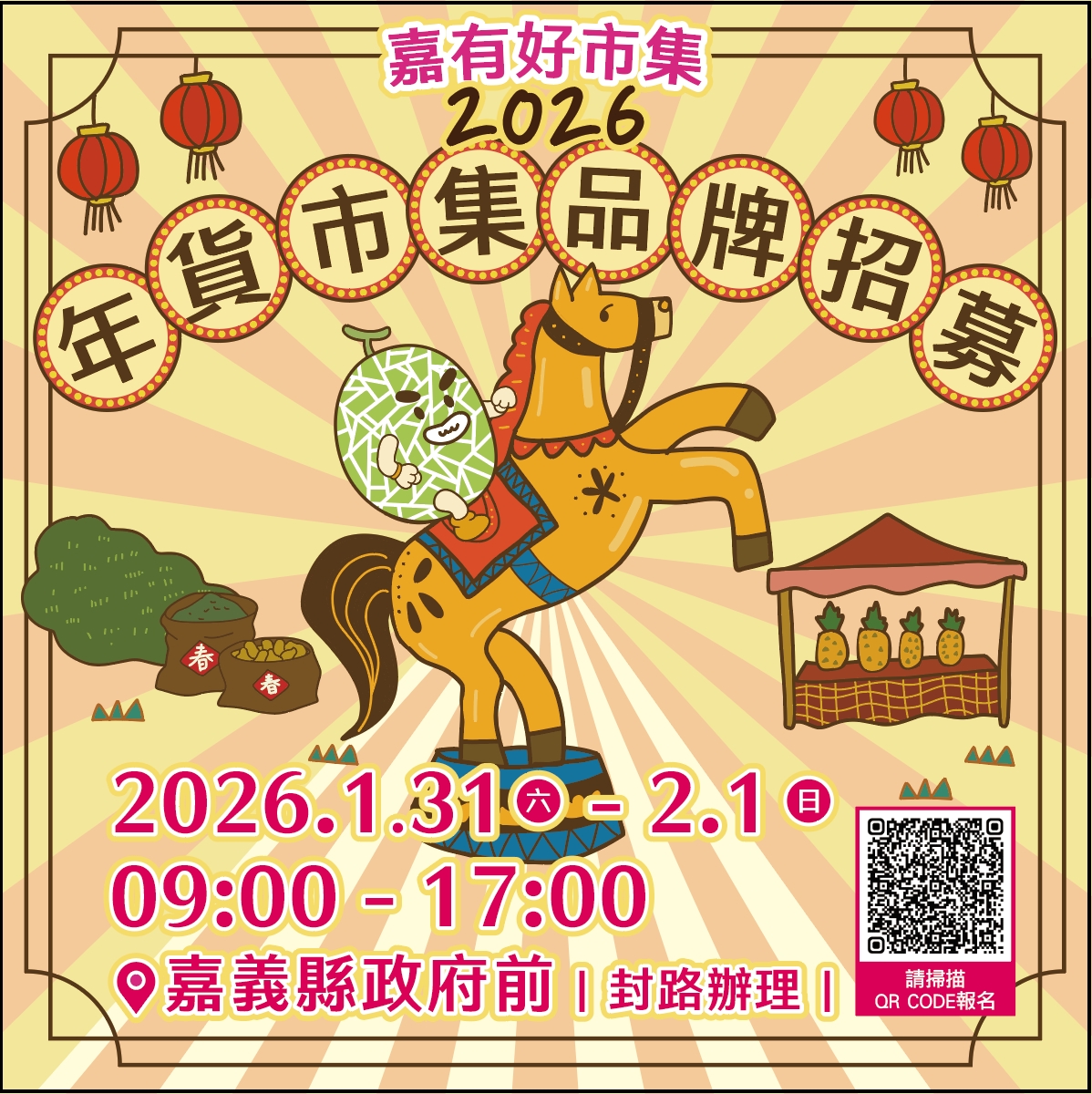 | 2026嘉義縣年貨大街 | 1/31(六)~2/1(日) 09:00-17:00 |