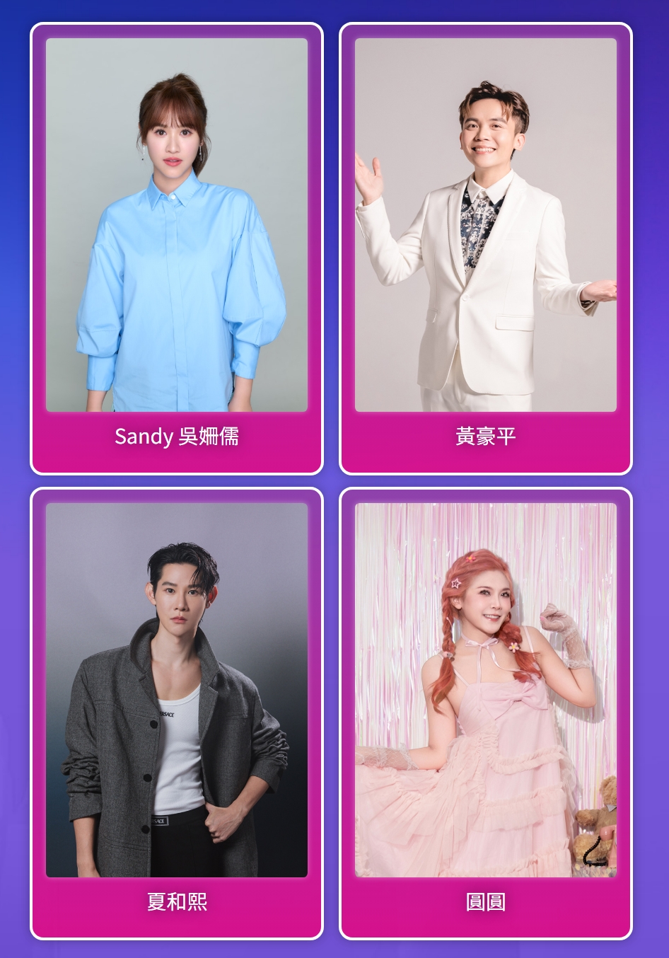 今年演唱會由吳姍儒(Sandy)、黃豪平、夏和熙、圓圓共同主持,其中 Sandy 曾獲得金鐘主持人獎,黃豪平亦有多次主持金鐘紅毯經驗,搭配擅長炒熱氣氛的圓圓與夏和熙,將與大家共同迎接新的一年。