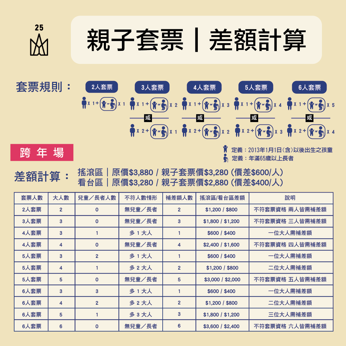 | 親子套票-搖滾區 | 2,880元 |