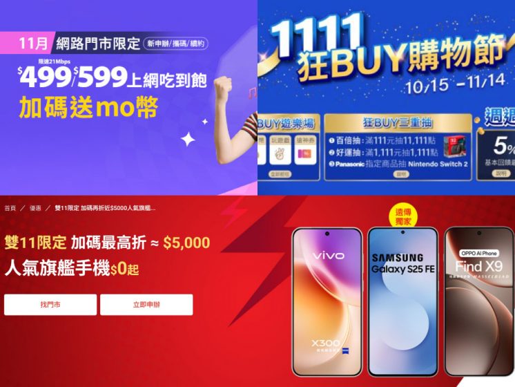 2025 年 1111 購物節即將到來,台灣四家電信推出多項優惠,從買新機、手機月租費、國外網路到預付卡都有折扣,可點擊下方連結快速查看。