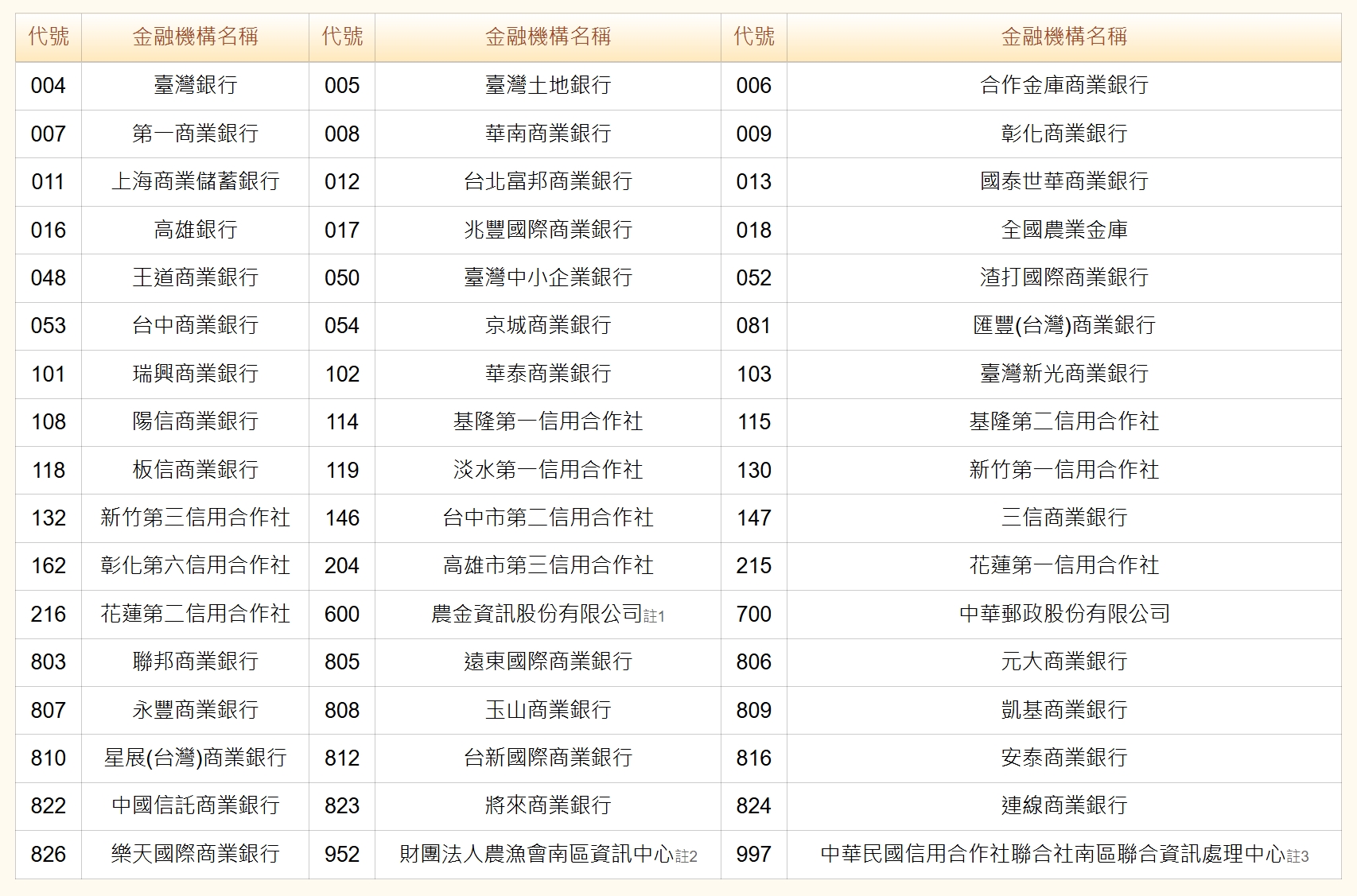 - 選擇金融機構代號,輸入本人「金融機構帳號(銀行、郵局皆可)」👉看銀行代號