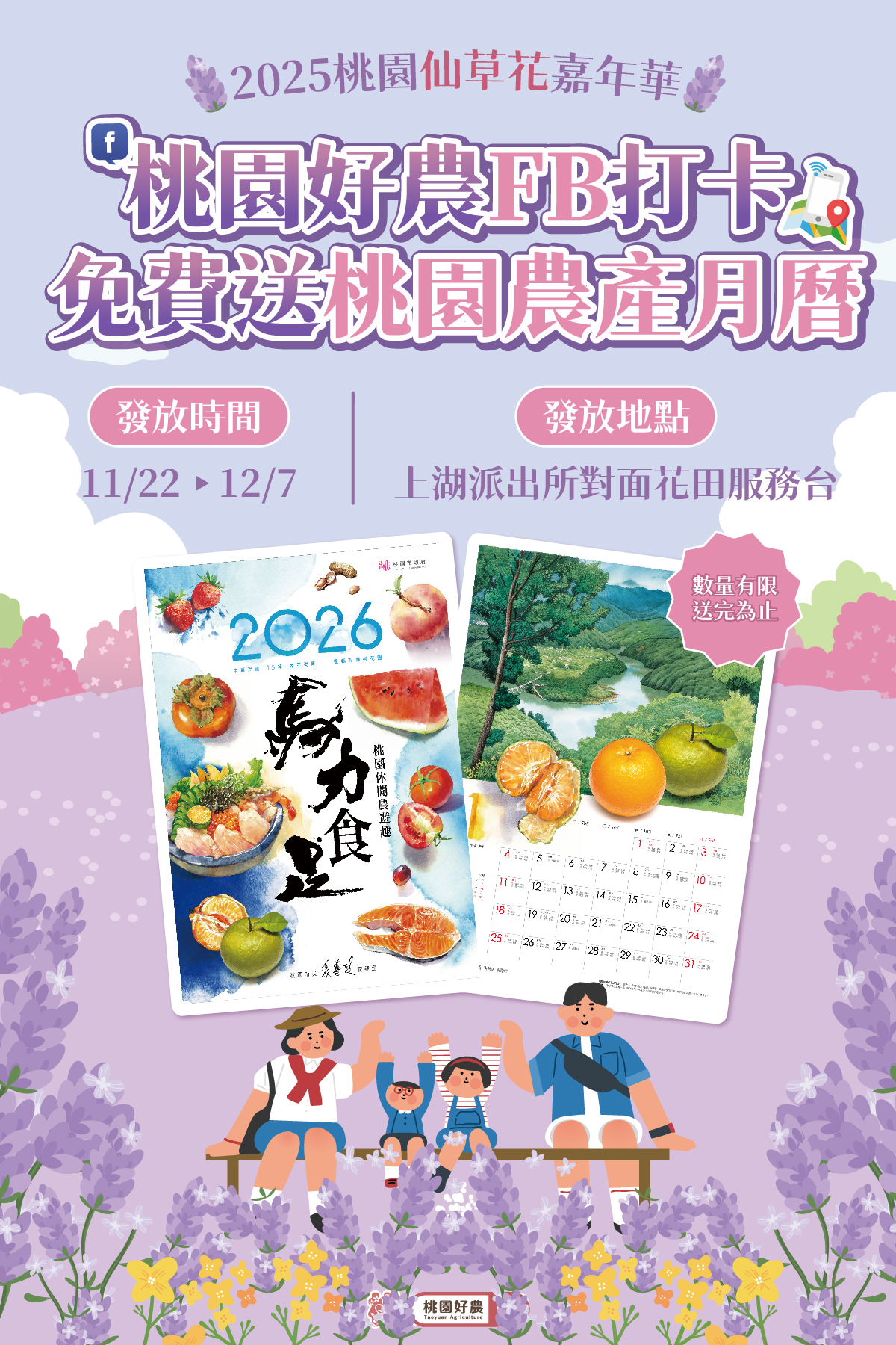 於現場拍照打卡,免費送你月曆 ! 這款農產月曆結合農村景色與作物,適合送親友或自己收藏,可至服務台領取。