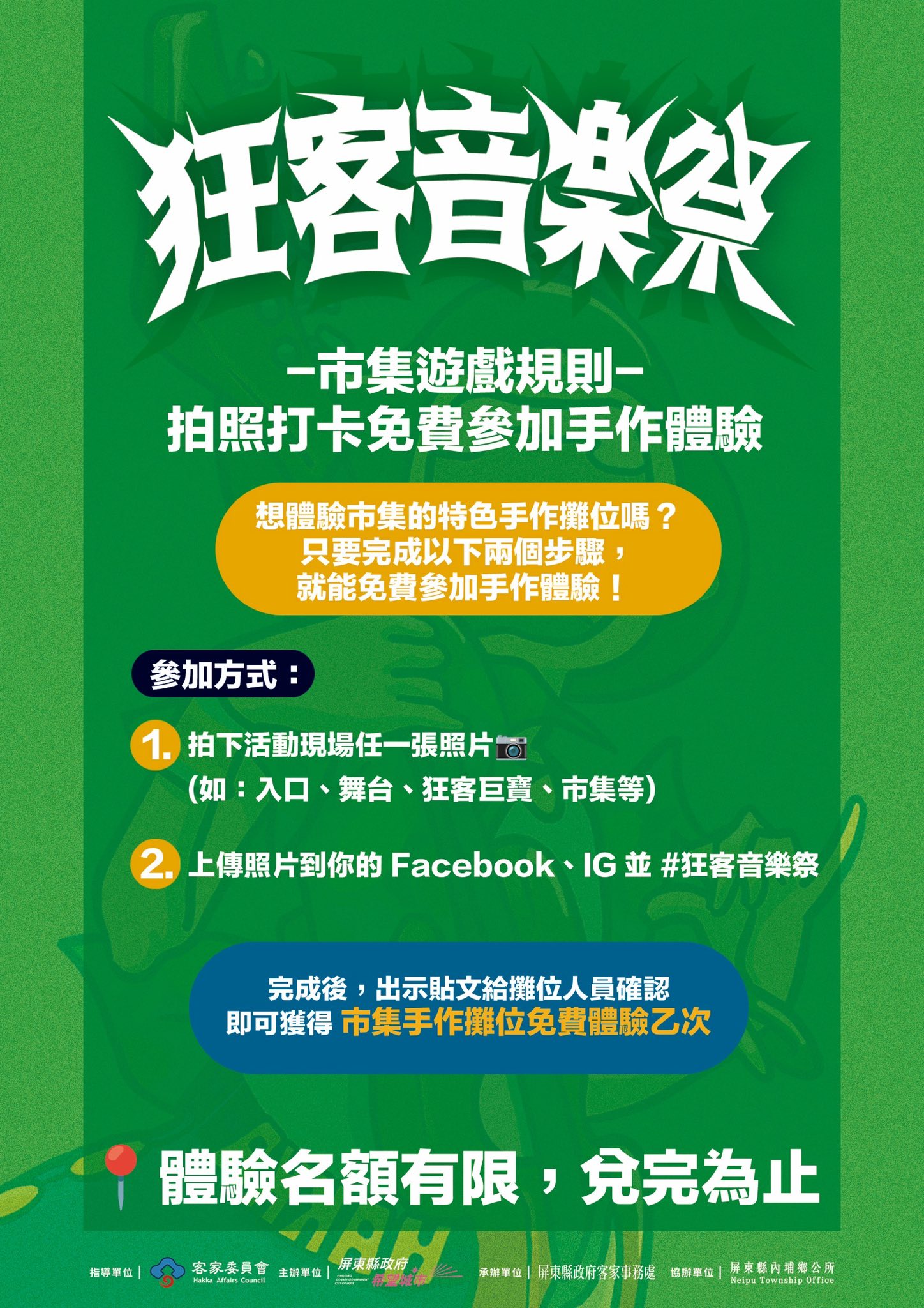 第二屆狂客音樂祭將於 11/22~11/23 登場,今年除了邀請知名歌手到場演出,現場也有市集,會帶來美食及文創攤位。特別是完成打卡任務,還可以免費玩客家手作 ! 推薦大家不妨把握假期,前來參與這場客家主題音樂祭,感受客家文化的魅力。