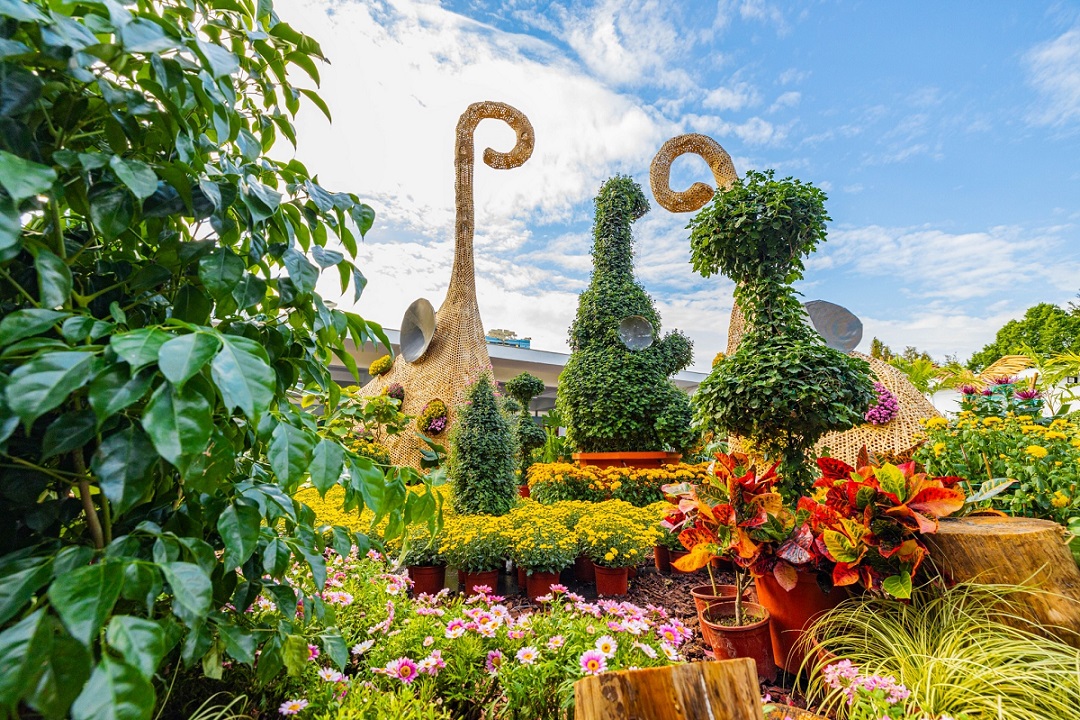 今年菊展以「藝菊圓夢」為主題,設置了 15 個不同風格的主題展區,搭配小菊、大菊、造型菊等多種技法,打造富有層次的菊藝盛宴。