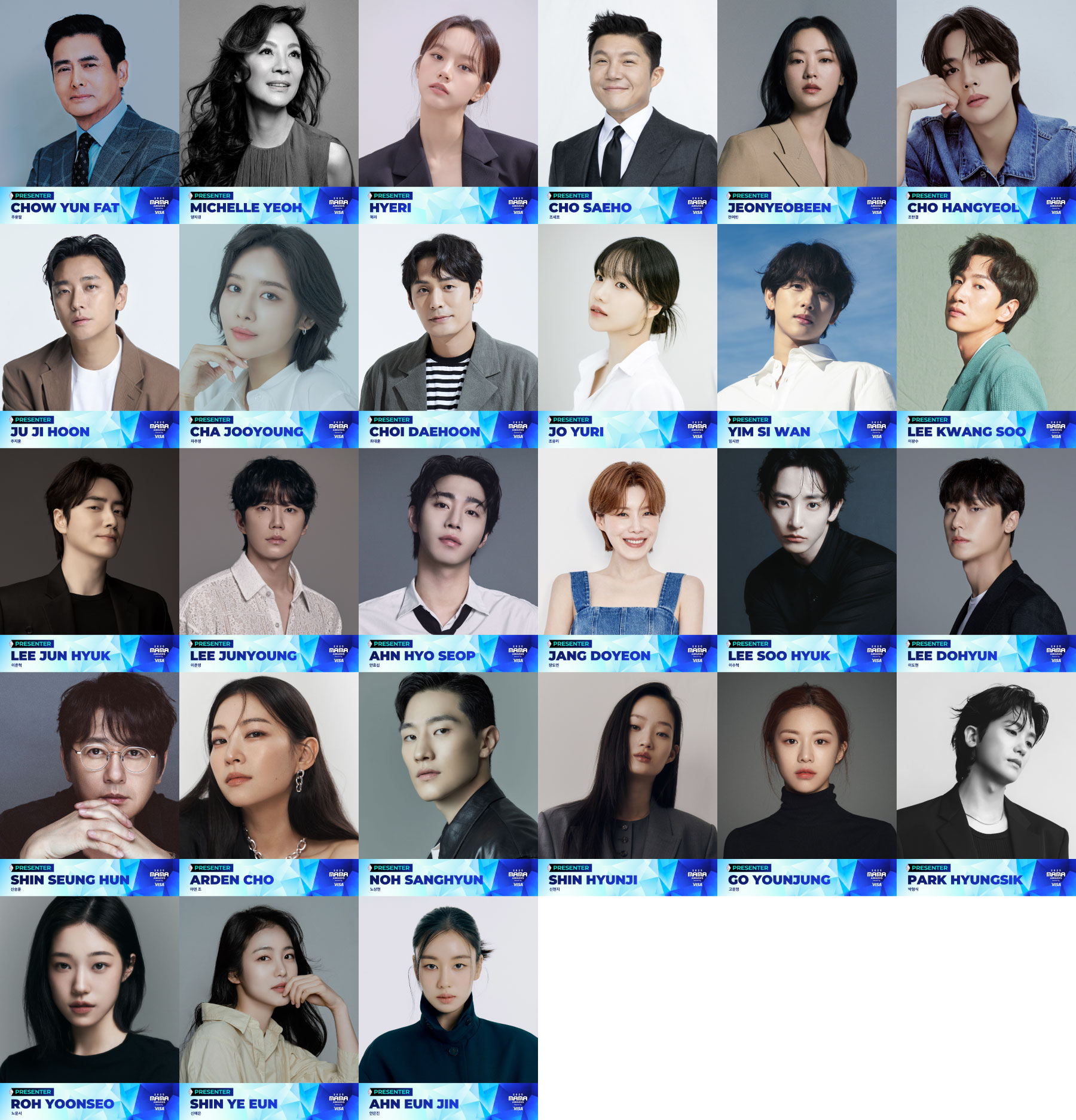 除了韓國知名藝人以外,今年亦邀請到香港歌手、馬來西亞女演員擔任典禮頒獎人,完整名單如下。