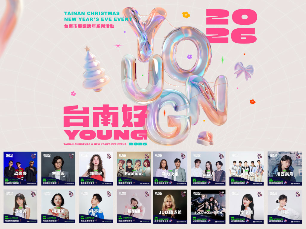 隨著 2026 年腳步靠近,不只台南各地展開聖誕節點燈與聖誕市集,台南市政府也公布跨年卡司陣容,總共有 3 場演唱會。想要感受耶誕或打算規劃跨年夜的朋友,現在可以開始安排啦 !