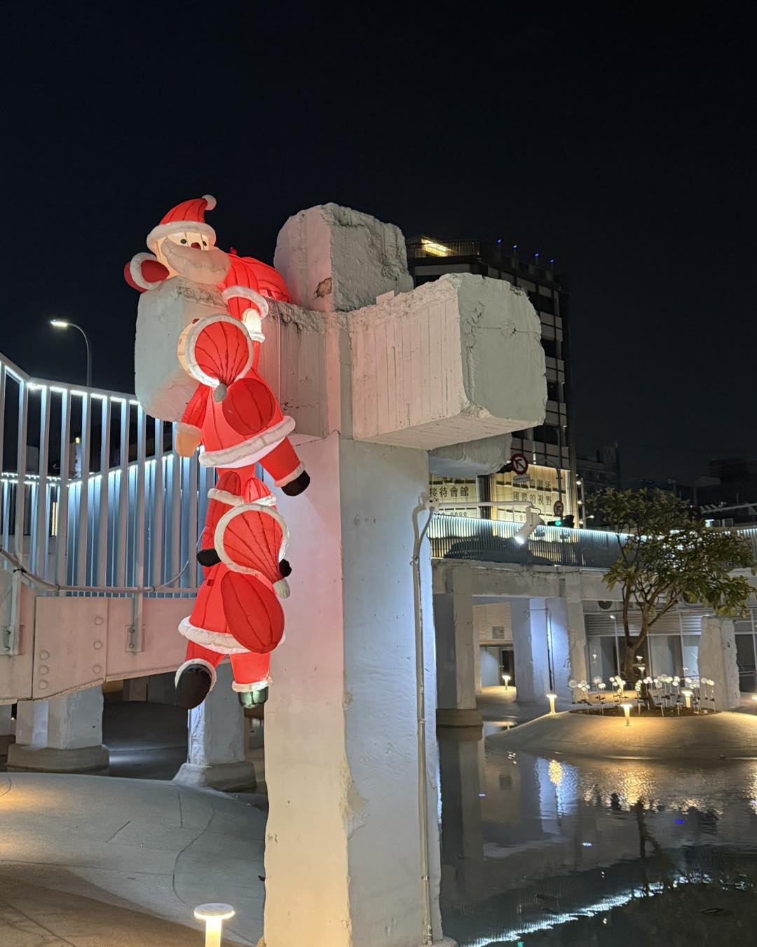 另一棵與新營相互輝映的聖誕樹在河樂展區,還有聖誕老人現身廣場 ! 今年河樂廣場「光之旅程」聖誕樹採用鏡面壓克力與幾何打造,除了 2025 年 12 月 14 日有有園遊會、市集、點燈晚會,12 月 24 日 19:00-21:00 還有聖誕幸福報佳音,要陪伴大家度過平安夜。
