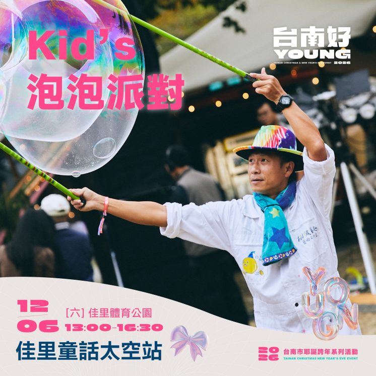 每年台南市政府於推出耶誕跨年系列活動,從聖誕節前一路到跨年,營造歡樂佳節氛圍。今年有 3 場親子活動,分別在新市區、佳里區、東區各有一場,不僅會邀請劇團來表演,還有闖關、送好禮。