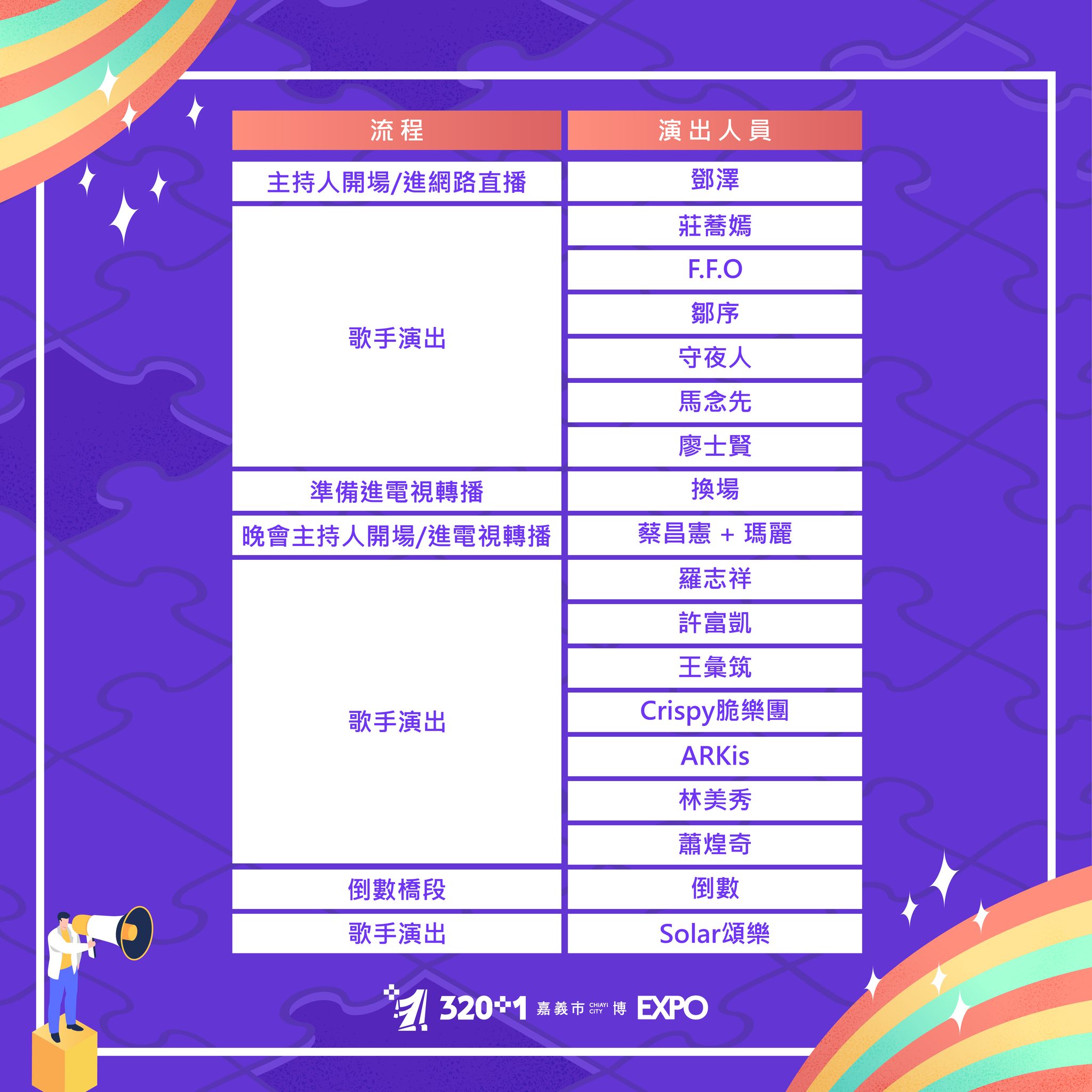 | 2026嘉義市跨年晚會 | 卡司 |