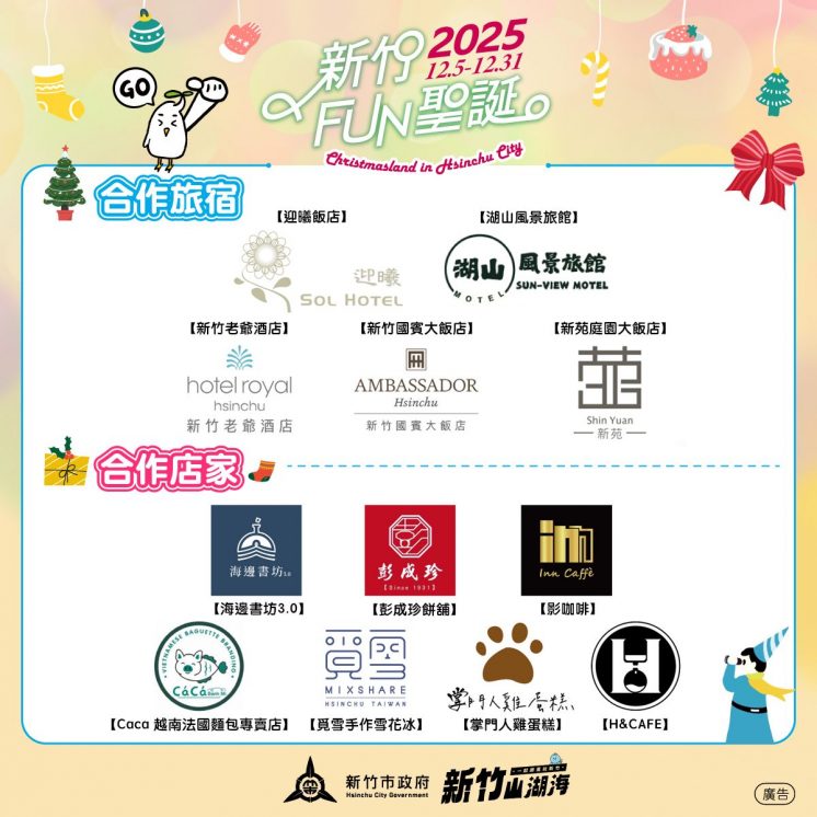 | 聖誕幸運星摸彩 在合作店家、旅宿、聖誕市集消費滿 200 元可獲得摸彩券 | 12/6~12/31假日 |