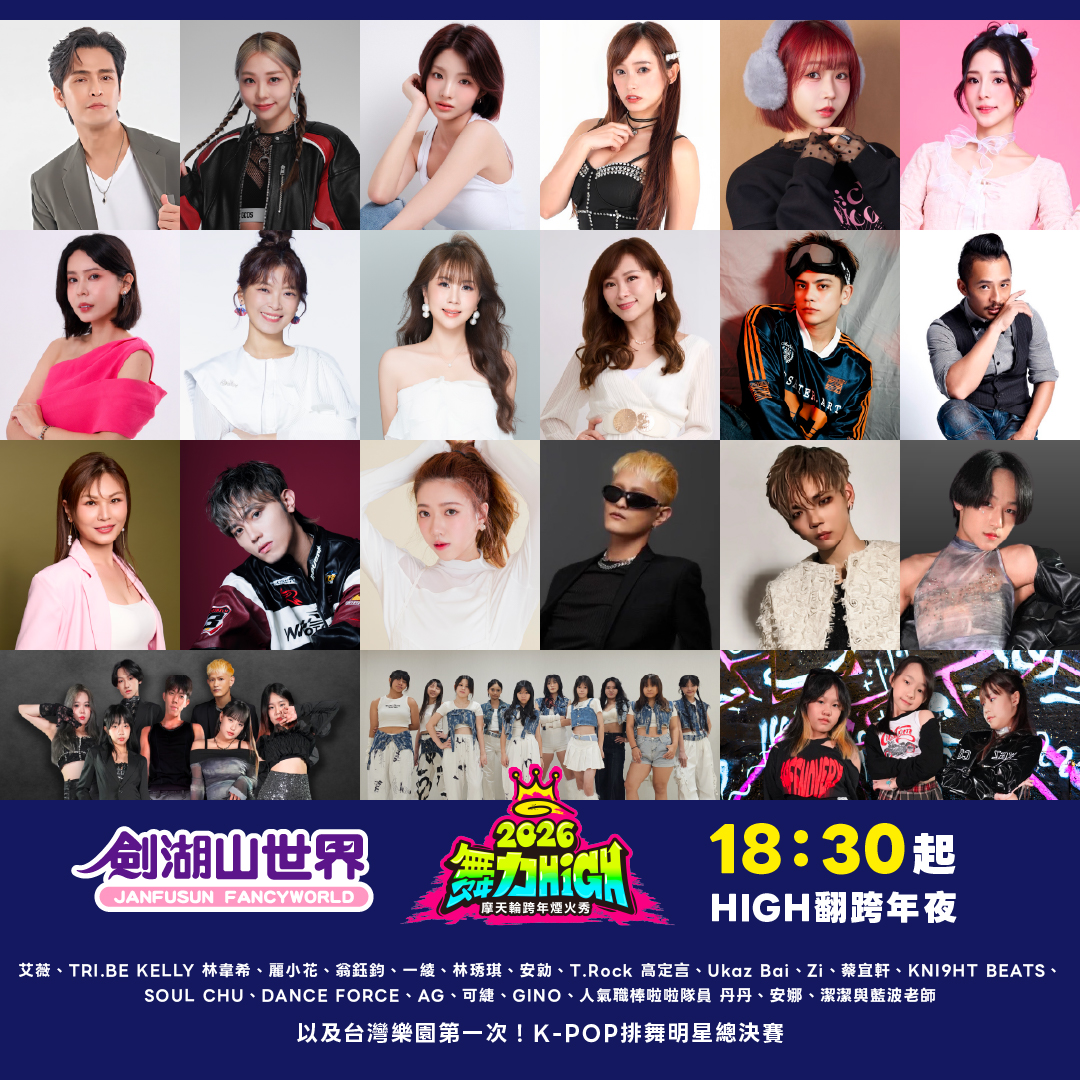 雲林劍湖山世界將在 2025 年 12 月 31 日晚上至 2026 年 1 月 1 日舉辦 2026 跨年活動,當天除了會邀請艾薇、韓國女團 TRI.BE 成員 KELLY 到場演唱,這次更首次舉辦 K-pop 舞蹈大賽,會在跨年當晚進行總決賽 !