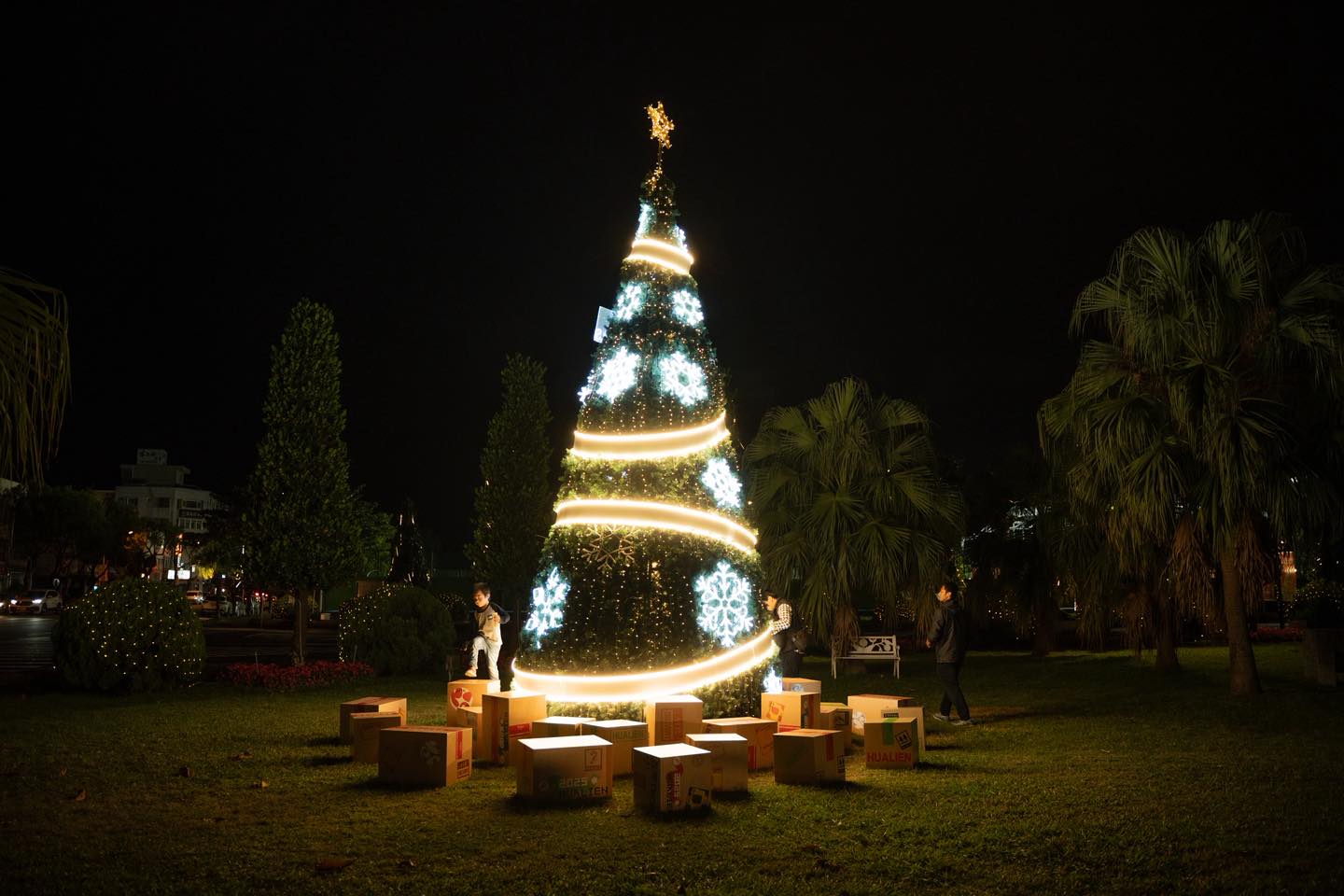 今年花蓮縣政府也於 2025 年 12 月 17 日起展開「幸福聖誕城」,點亮縣府廣場前聖誕樹 !