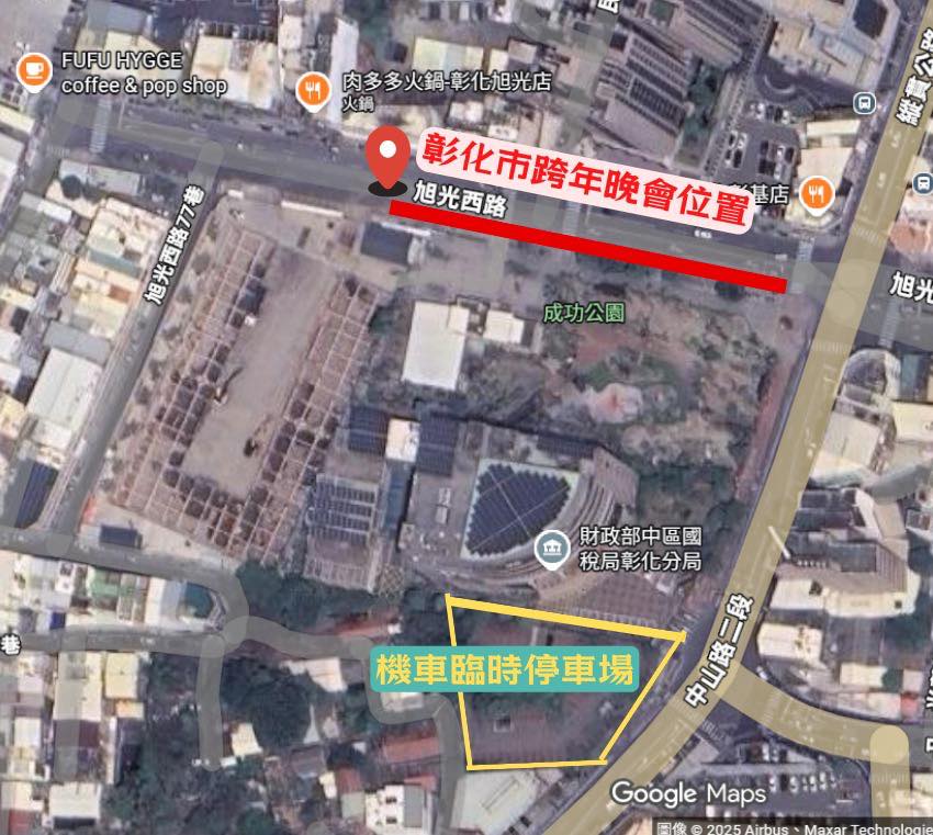 騎機車的朋友,可將車子停放在「財政部中區國稅局彰化分局旁空地」臨時停車場,再步行抵達會場。