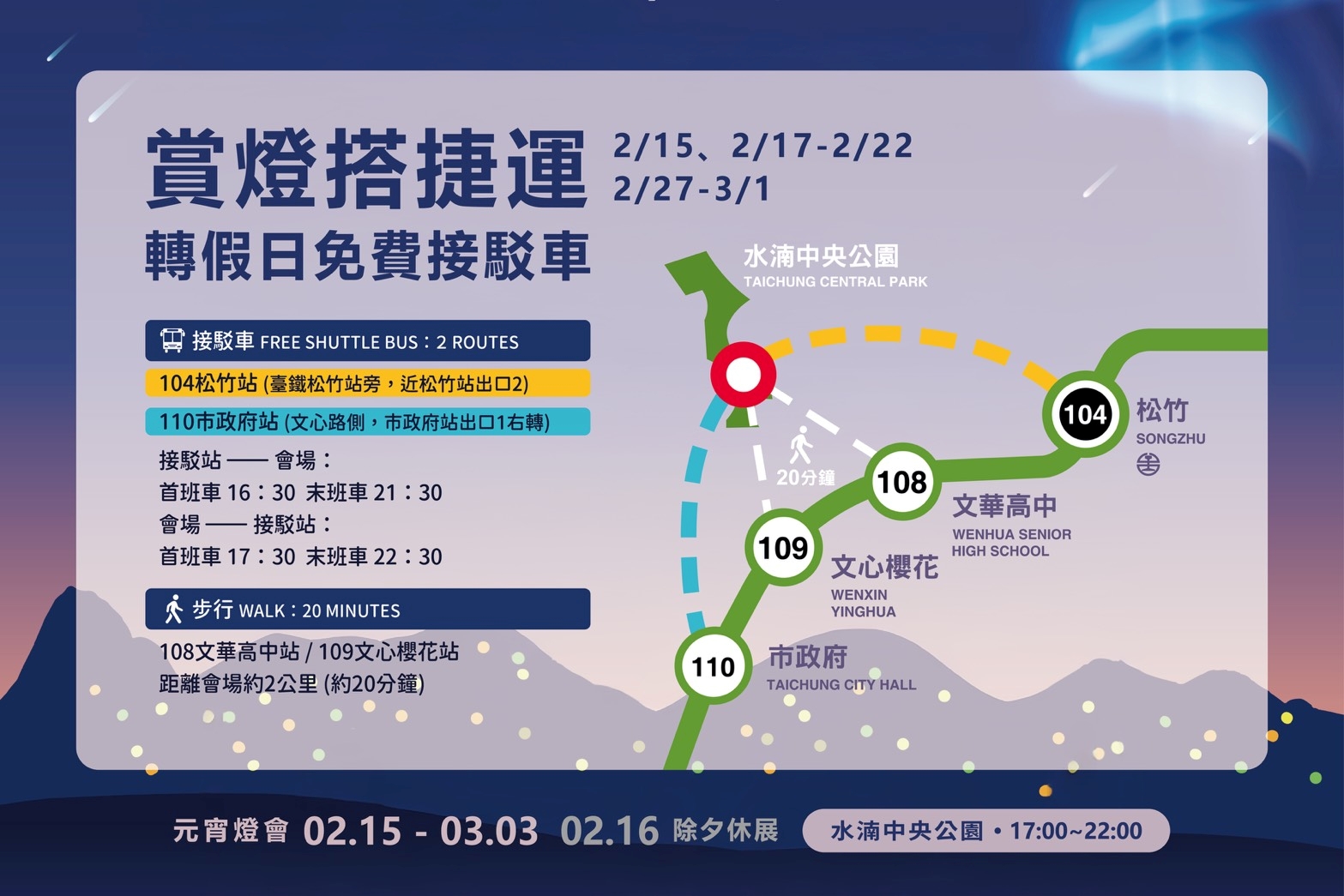 - 2026台中燈會交通:交通管制|停車場|公車、捷運|免費接駁車
