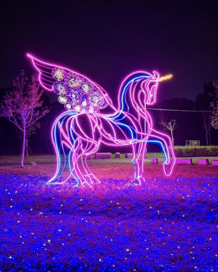 特別是今年主燈是獨角獸造型的「馳光之翼」,將在 1 月 10 日正式點燈,當天晚會會邀請小男孩樂團、ZORN、伯爵白到場演出,可以順道來看表演。👉看節目表