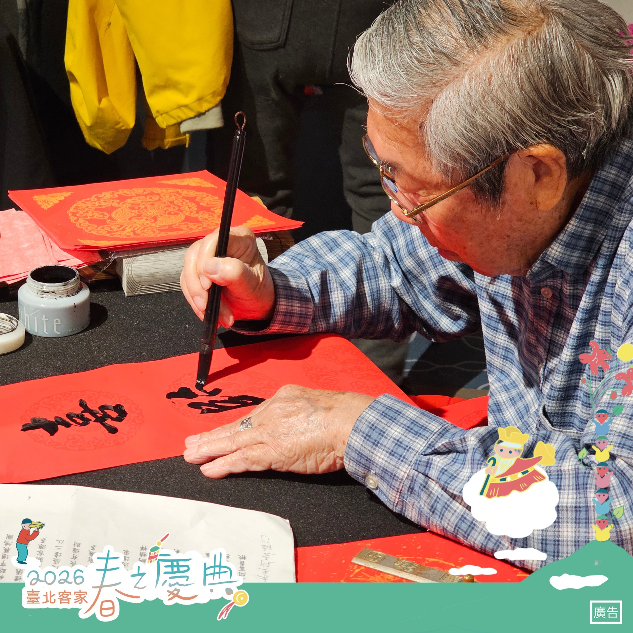 台北市客家文化主題公園將在 2/7(六) 辦理新春揮毫,邀請客籍書法家曾安福老師為大家寫下祝福,並贈送春聯給來到現場參與的民眾。