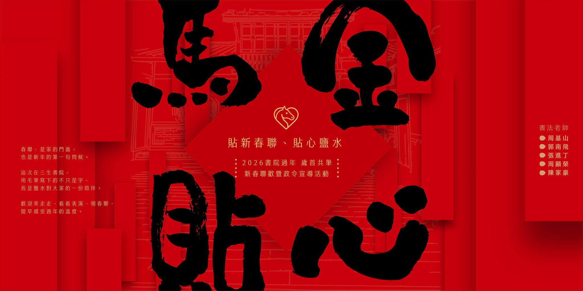 農曆春節即將到來,台南市鹽水區公所將於三生書院辦理「馬金貼心」活動,除了會邀請多位書法老師到場揮毫,邀請府城木偶劇演出,還會發放新春對聯與毛筆書寫祈福卡,讓大家感受到滿滿年味。