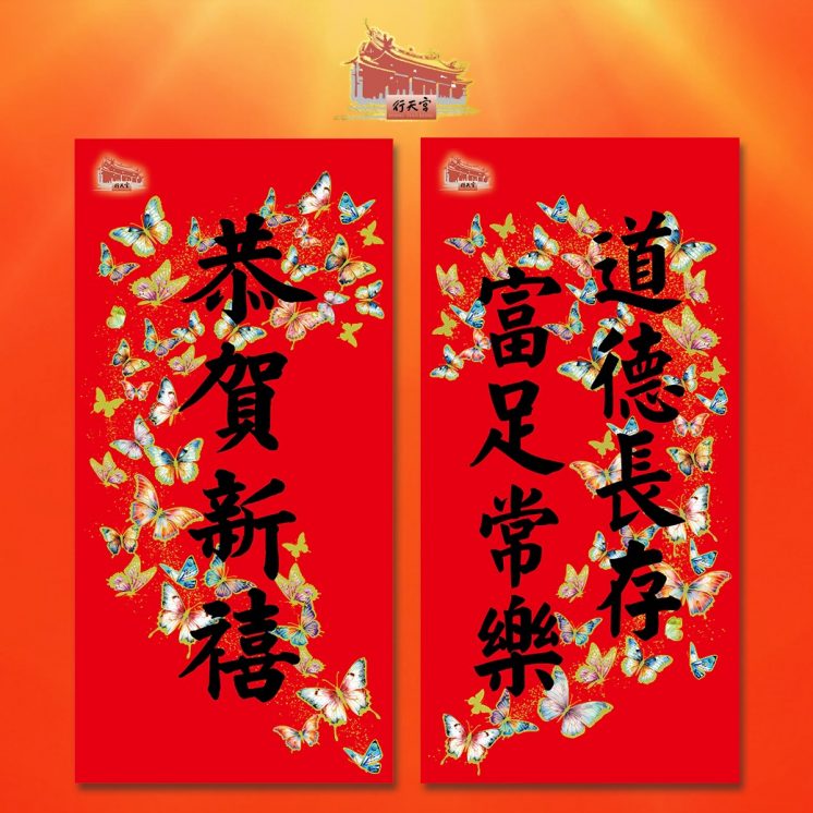 台北行天宮每年推出福贈春聯活動,免費贈送春聯給信徒。今年設計了「福」、「春」斗方,「開工大吉」、「開市大吉」、「恭賀新禧」、「富足常樂 道德長存」長型春聯,期盼人人皆能心存善念,口說好話。想要領取春聯的朋友,12/29 起可至行天宮三宮索取。