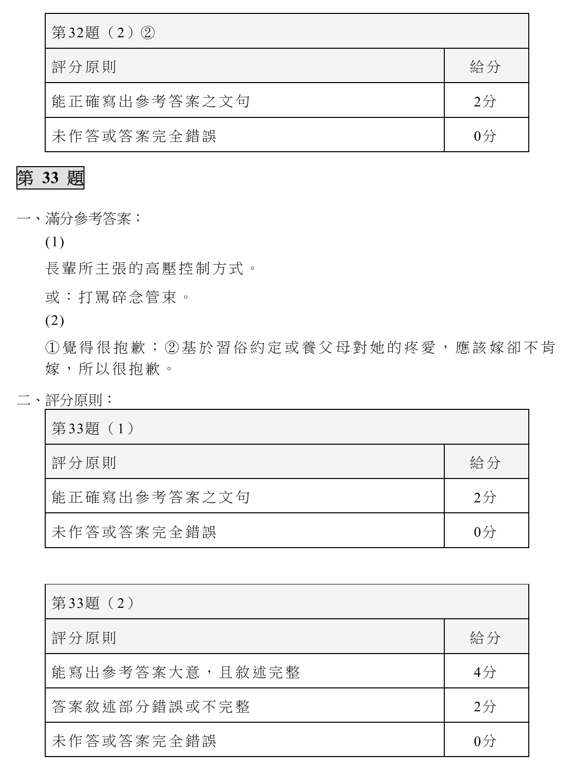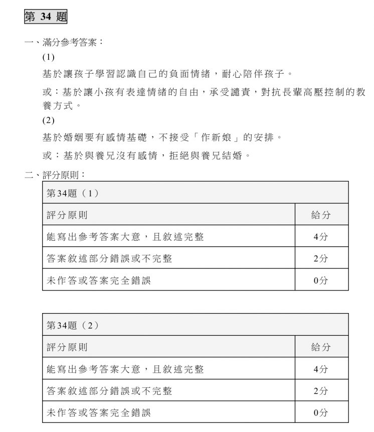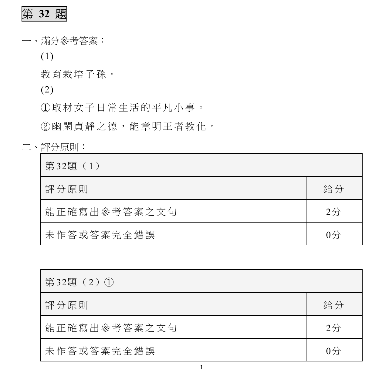 115學年度學測國文手寫題答案、評分原則與給分標準已公告,如下。