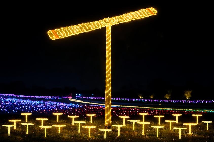 「光舞豐年」是原住民燈區,此區將族人文化與神話轉換成燈飾,展有山豬、貓頭鷹等原民處 IP 燈組,並整合原鄉產業與文創,讓遊客看見原民獨有的文化底蘊。
