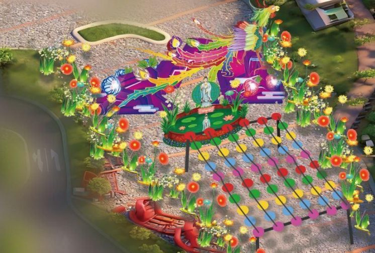燈區包括波光藝境、光舞豐年、宗教祈福、城市交流、最有來投、搖搖擺擺、反應過激的貓暢遊十三巷鎮、歡樂幻影馬戲團、共榮之光、環保、花漾奇遇花海燈區,另有市集攤位、SUP 體驗區和毛小孩運動場,也可以帶寵物來。
