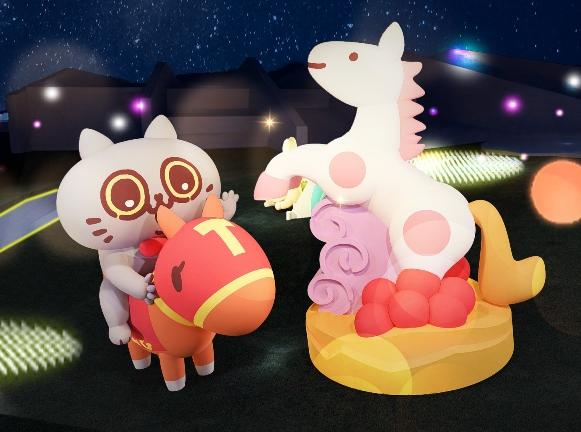 「反應過激的貓」燈區是這次南投燈會不可錯過的展區,共展出 13 座燈組與 1 座副燈,可見白貓「吾輩」、黑貓「探戈」以 12 生肖裝扮,遊玩南投各地的可愛燈組。