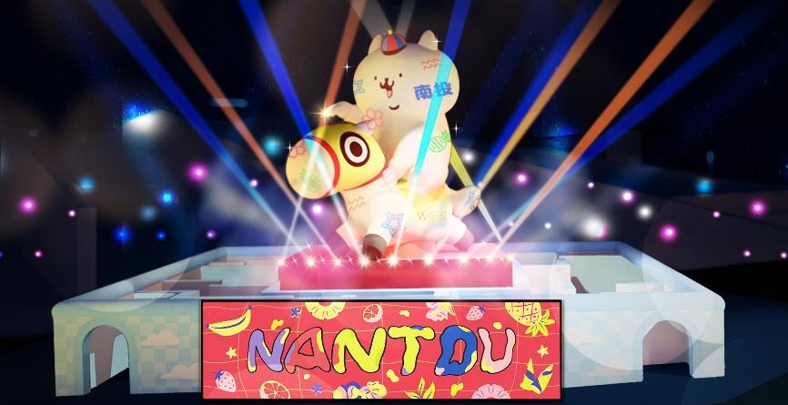 而今年副燈位在反應過激的貓展區,是一座寫有「NANTOU」的迷宮造型燈組,將結合七彩燈光演出。