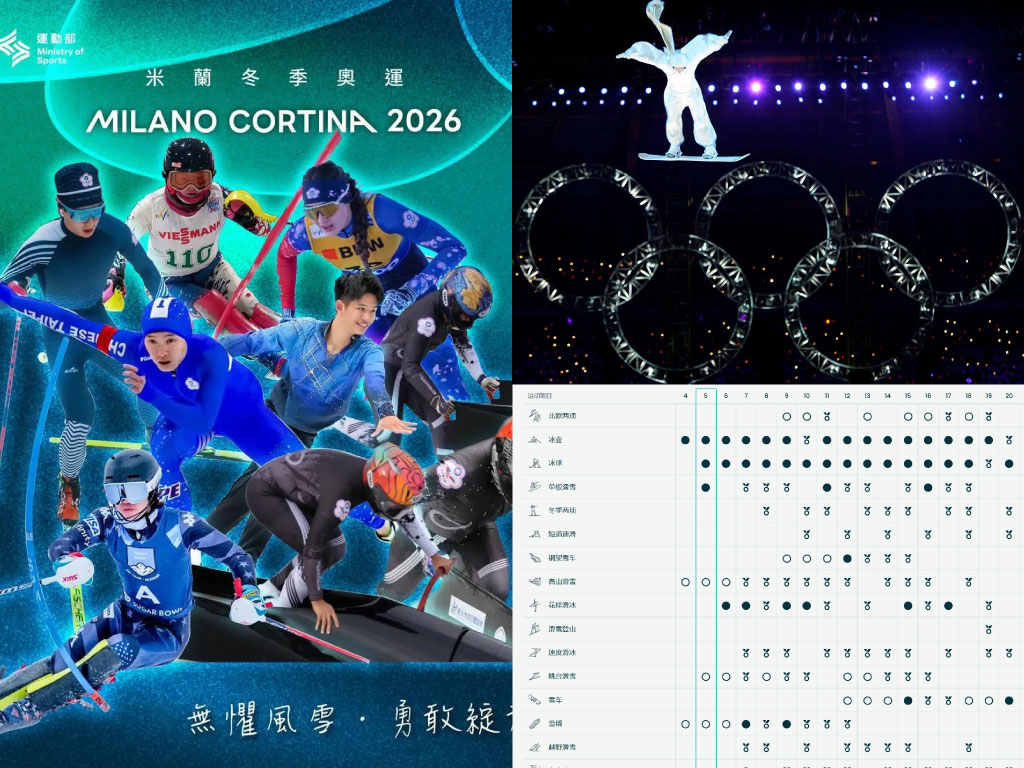 - 2026冬季奧運台灣參賽選手、賽程時間: