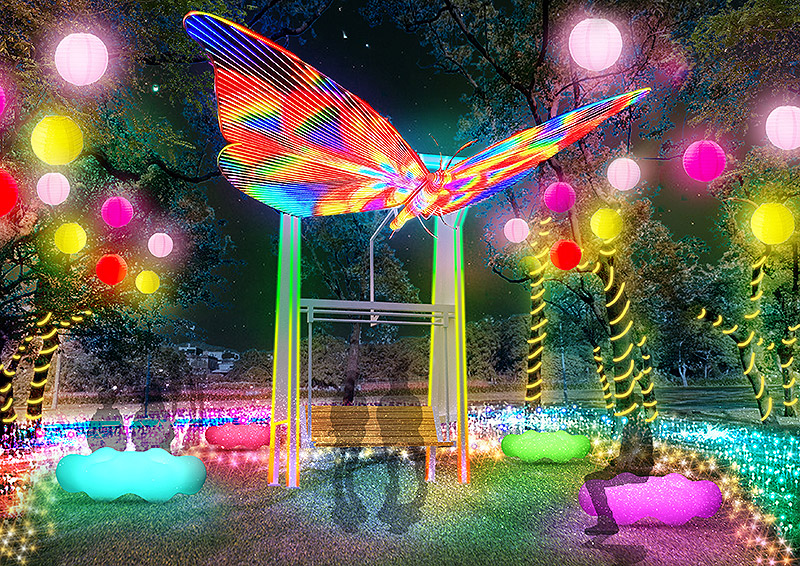 「夢幻樂園」燈區設有海盜船、流光騎士、旋轉木馬、小火車等遊樂設施,可在此搭車遊園賞燈,或體驗夜間遊玩樂趣。