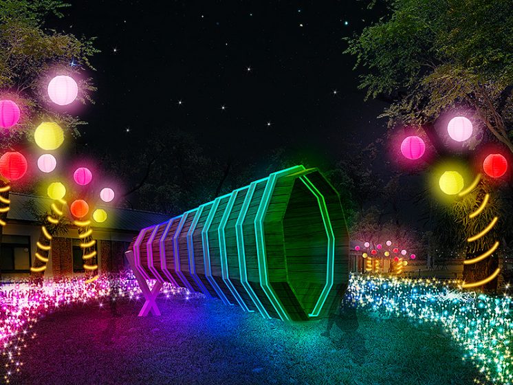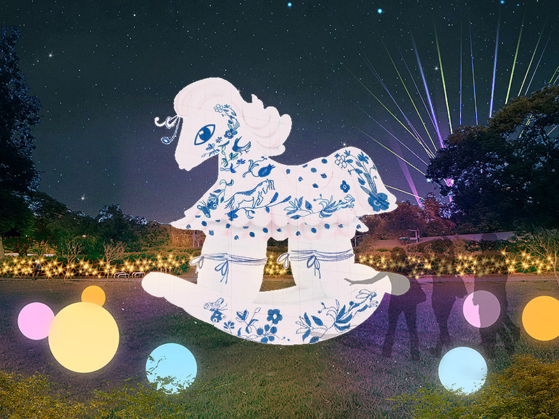 這裡巧妙將馬、祈願、新年祝福等融入燈光裝置,透過場景設計,引領觀者走入故事、許下願望,留下美好回憶。