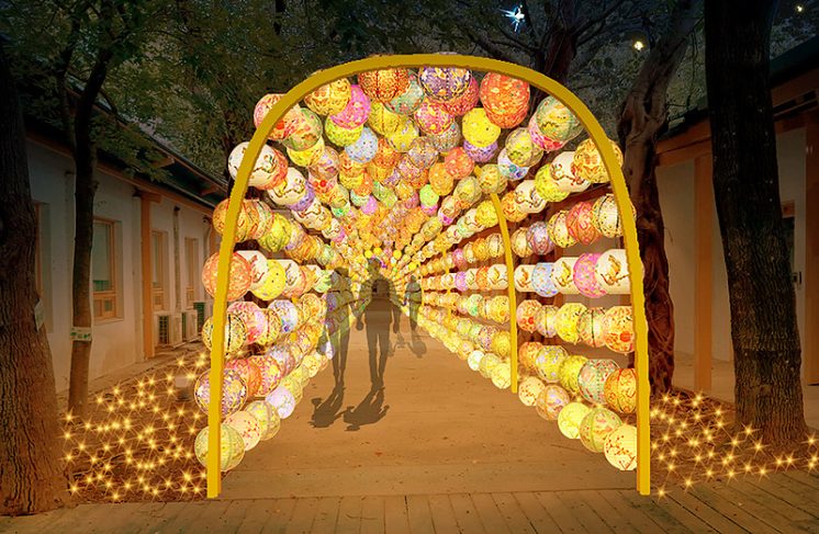 園區走廊與園區走道則懸掛了超過 1,500 個顆桃園市小朋友繪製的彩繪燈籠。
