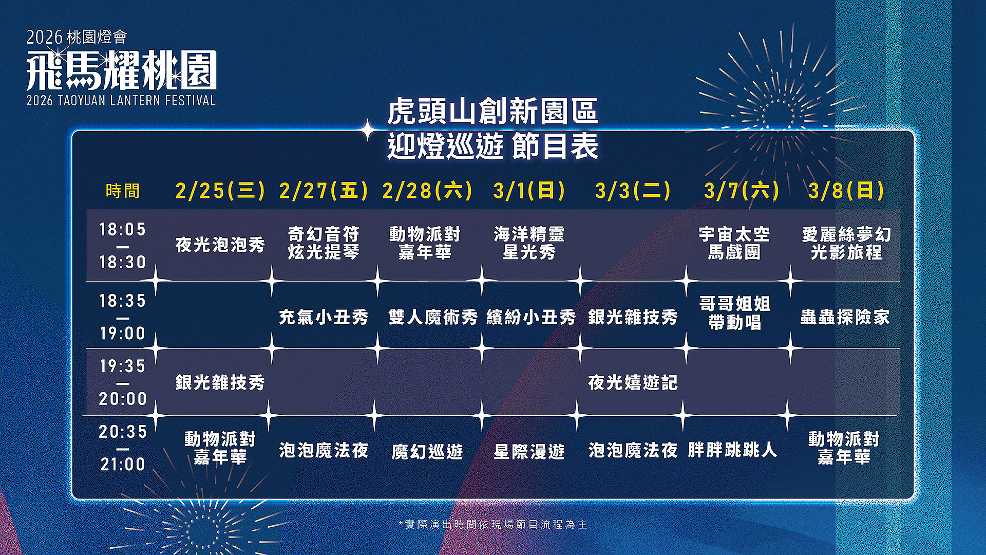 | 開幕活動 | 2/25(三) | 奔FUN舞台 |