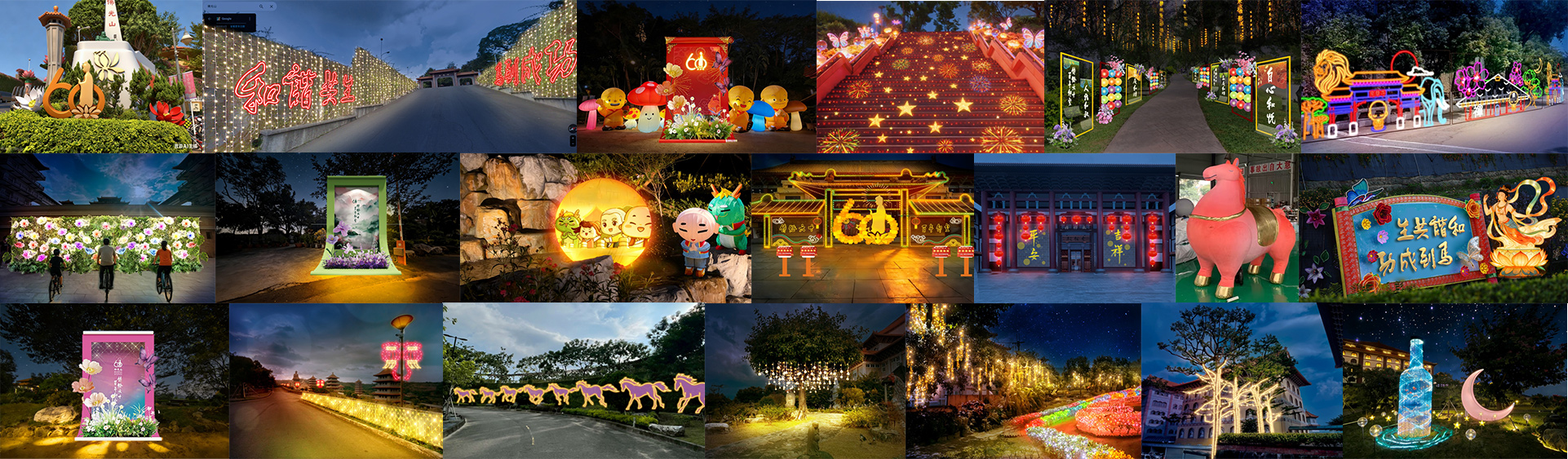 迎接春節到來,佛光山也設置了多組花燈,包括「好事蓮蓮」主燈、花卉燈組、彩繪燈籠光廊和白馬花燈,融合馬年與 60 週年元素設計。