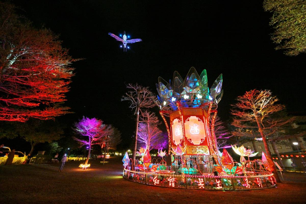 其中主燈位在曼陀羅園,有 12 公尺高,將帶來 3 分鐘的「天馬賜福」展演。特別是今年主燈燈座使用 6 面 LED 螢幕製成,大家可在這裡玩接福袋、迎好運遊戲,充滿趣味性。